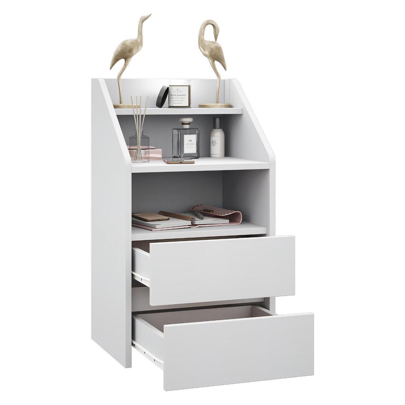 Функциональность: Два вместительных ящика подходят для хранения косметики, аксессуаров и мелочей. Открытая ниша и полка позволяют разместить книги или декоративные элементы.
