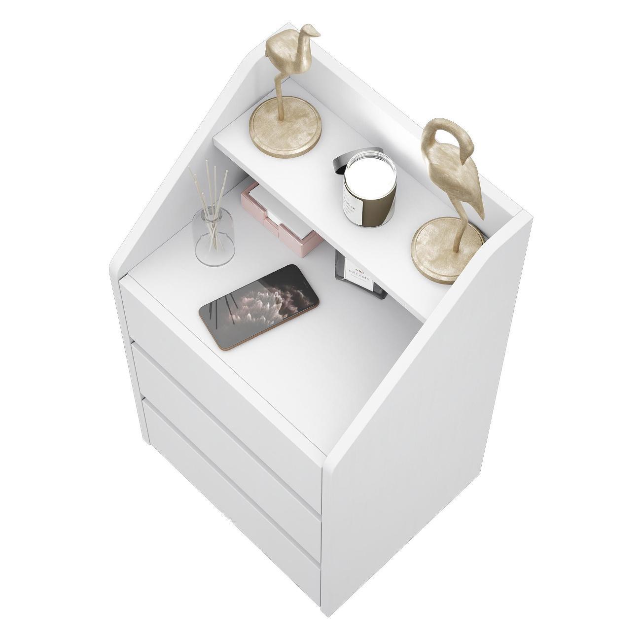 Прикроватная тумба с тремя ящиками, нишей и полкой — это функциональный элемент мебели, который отлично подойдет для спальни, детской или гостиной.