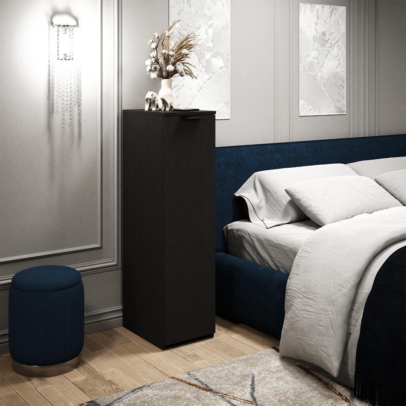 Узкая и высокая тумбочка с выдвижным ящиком — это функциональное решение для организации пространства. Модель «Витто-187» от MFMaster отличается компактными размерами: высота 110,8 см, ширина 29,5 см и глубина 40,4 см. Изготовлена из прочного ЛДСП, что обеспечивает долговечность.