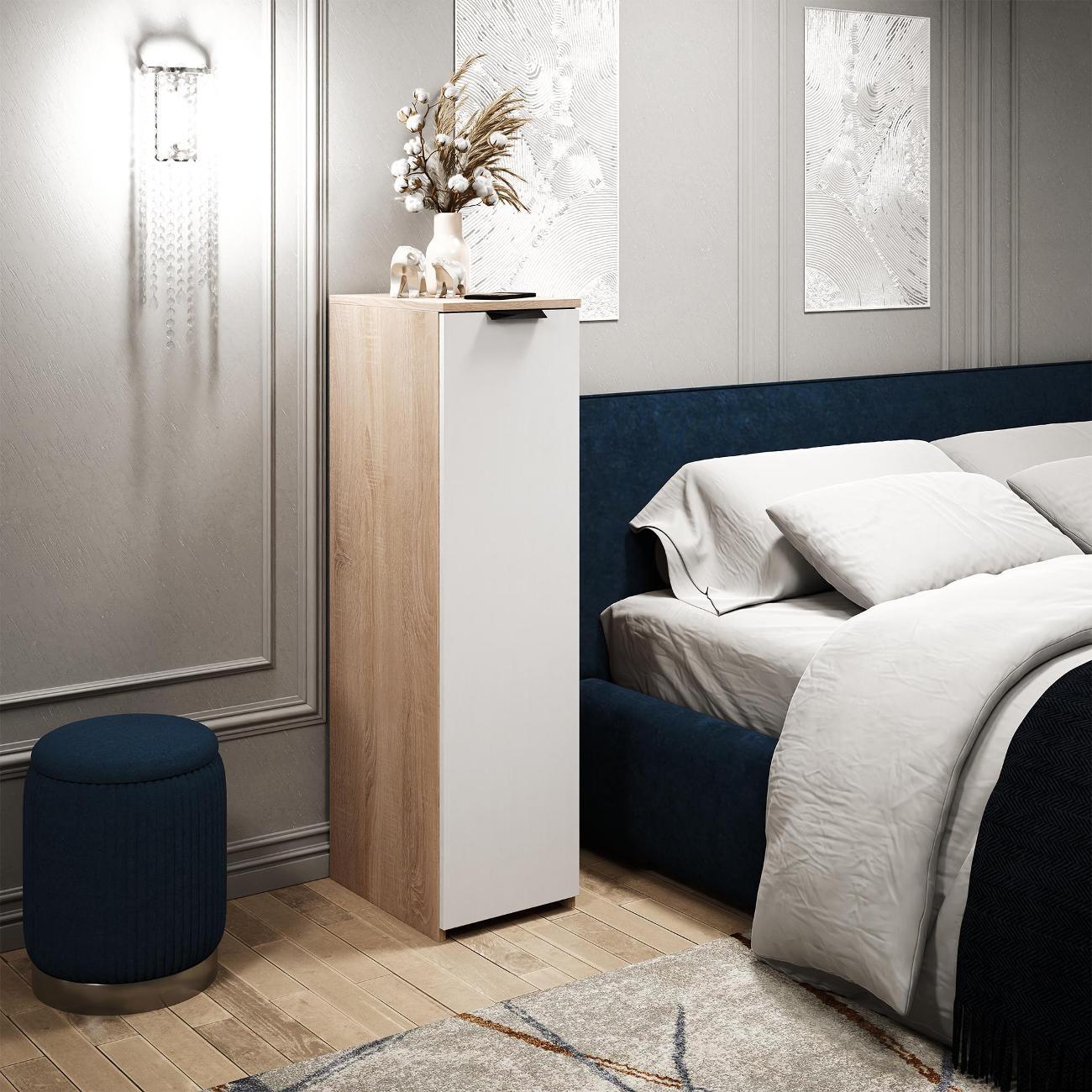 Узкая и высокая тумбочка с выдвижным ящиком — это функциональное решение для организации пространства. Модель «Витто-187» от MFMaster отличается компактными размерами: высота 110,8 см, ширина 29,5 см и глубина 40,4 см. Изготовлена из прочного ЛДСП, что обеспечивает долговечность.