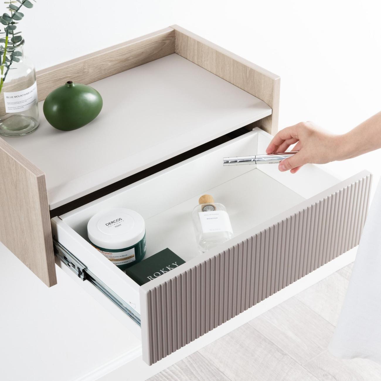 Современный дизайн, приятный цвет. Очень гармонично смотрится. Заказали одну, но когда получили заказ очень понравился, заказали и вторую такую же тумбочку.