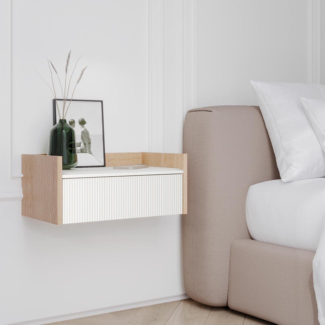Можно использовать как прикроватную тумбочку в спальне или как компактную консоль в прихожей. Фасад украшен декоративной фрезеровкой, которая придает тумбе выразительный внешний вид. В комплекте предусмотрено крепление к стене для надежного монтажа