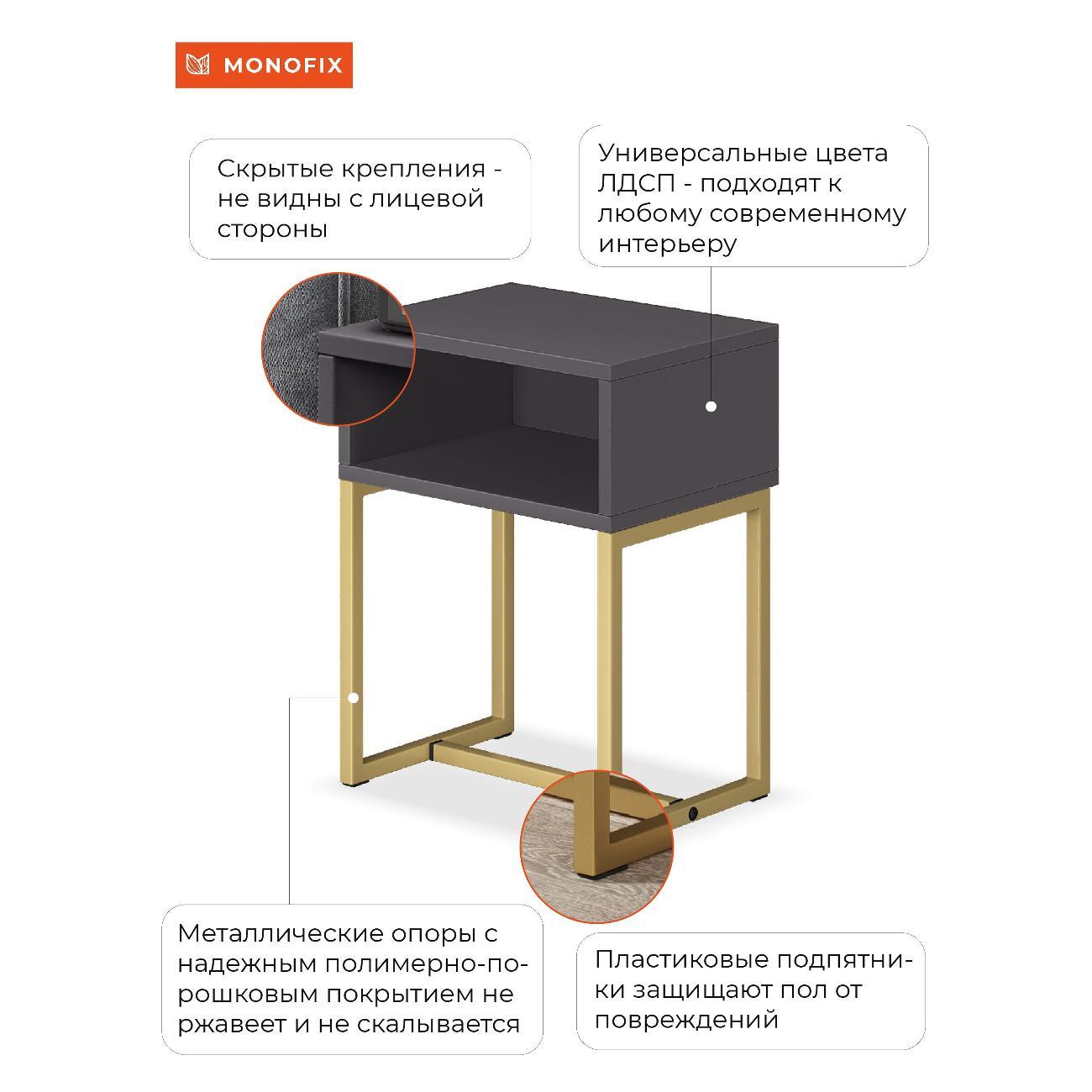 Вы можете купить Тумба прикроватная Monofix ЮНТА графит/ золото в магазинах М.Видео по доступной цене. Тумба прикроватная Monofix ЮНТА графит/ золото: подробное описание, фото и отзывы реальных покупателей, характеристики, возможность скачать инструкции и подобрать аксессуары.