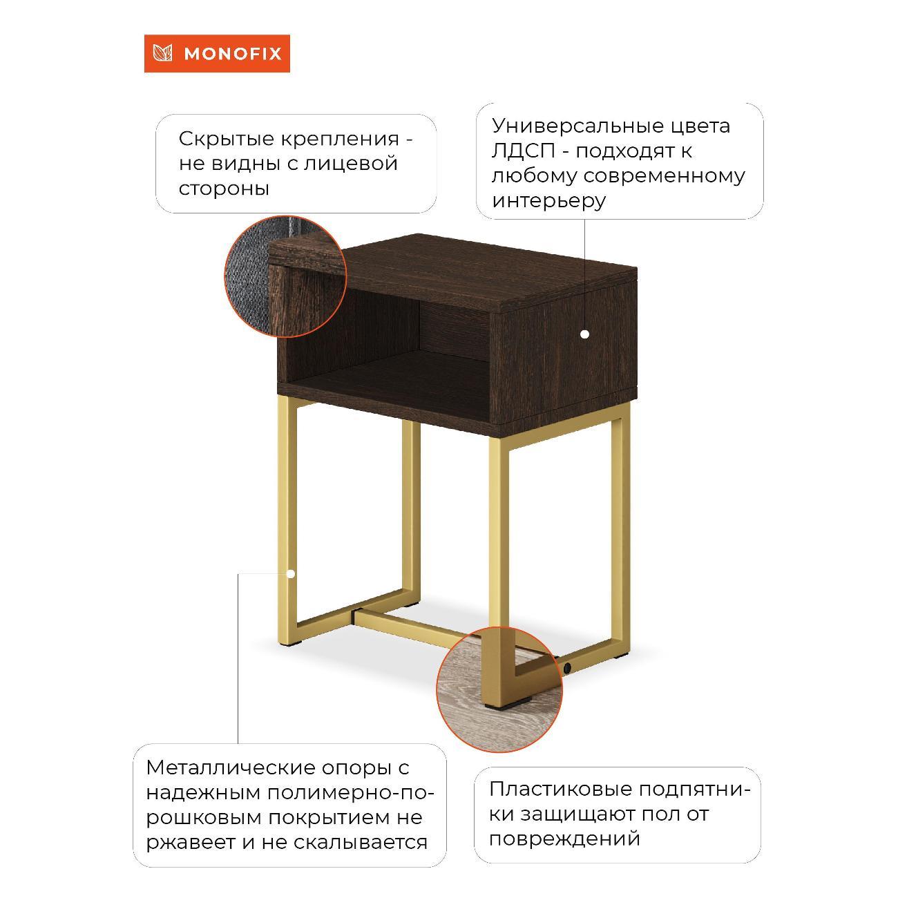 Вы можете купить Тумба прикроватная Monofix ЮНТА венге/ золото в магазинах М.Видео по доступной цене. Тумба прикроватная Monofix ЮНТА венге/ золото: подробное описание, фото и отзывы реальных покупателей, характеристики, возможность скачать инструкции и подобрать аксессуары.
