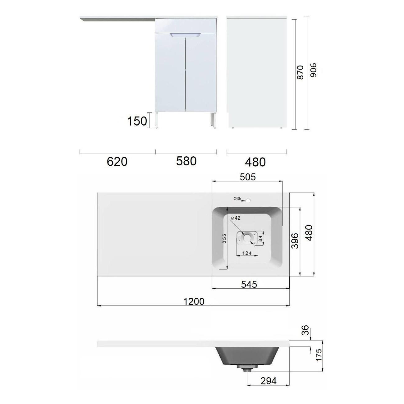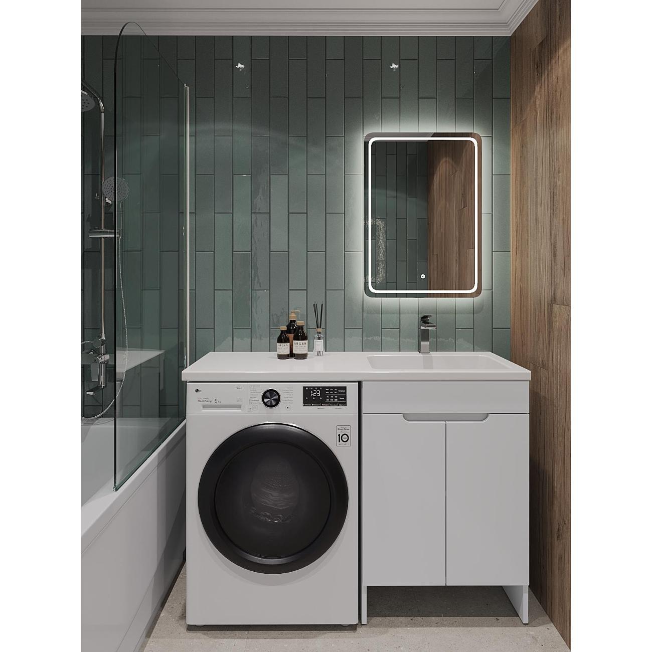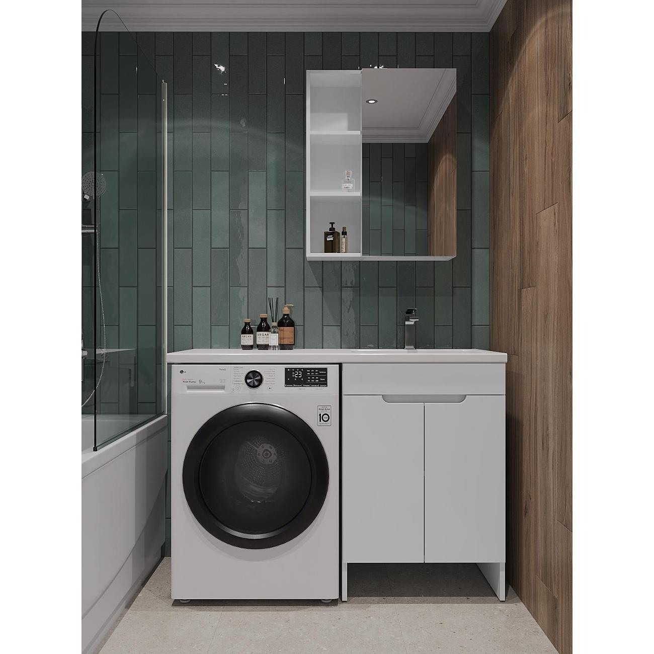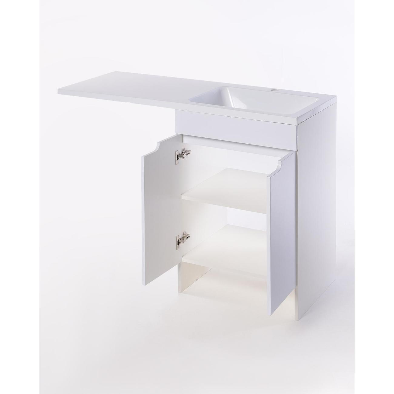 Orange Optima Напольная тумба с правой раковиной напольная под стиральную машину - исполнение правое (тумба справа). Предназначена для использования в ванных комнатах с повышенной влажностью. Фасад - МДФ в цвете белый глянец, корпус - ЛДСП в цвете белый глянец. В комплекте полка ЛДСП и ножки подпятники 4 шт (регулировка по высоте до 10 мм). Раковина с одним отверстием под смеситель (материал - искусственный камень). Зеркальный шкаф OP-60ZSW приобретается дополнительно.