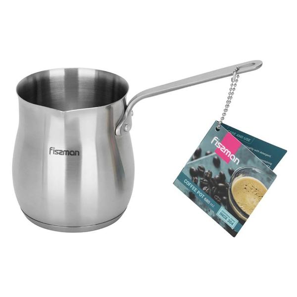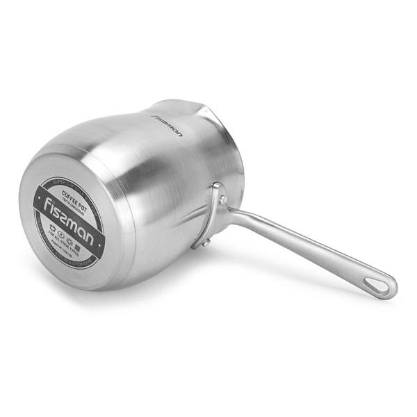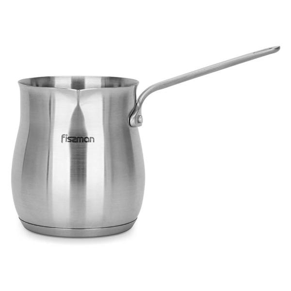 Турка для плиты FISSMAN 3293 выполнена в сером цвете с металлическим оттенком и имеет объём 680 мл, подходящий для приготовления нескольких порций за один раз.