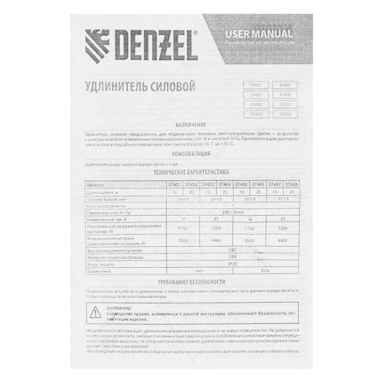 Вы можете купить Удлинитель Denzel Garden Series, ПВС 10м 1 розетка 3*15 мм (37407) в магазинах М.Видео по доступной цене. Удлинитель Denzel Garden Series, ПВС 10м 1 розетка 3*15 мм (37407): подробное описание, фото и отзывы реальных покупателей, характеристики, возможность скачать инструкции и подобрать аксессуары.