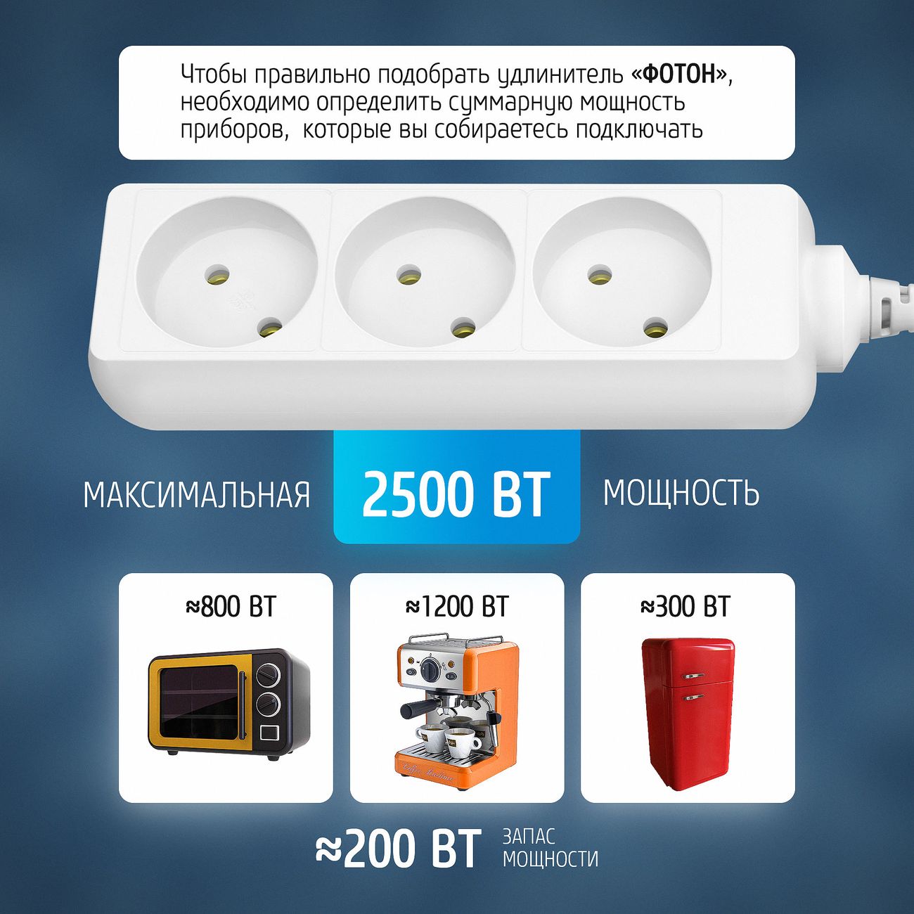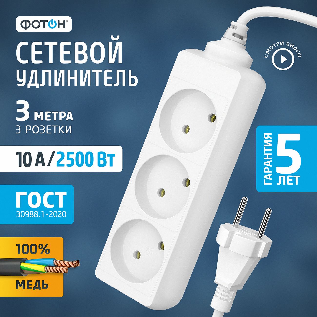 Вы можете купить Удлинитель Фотон 21112 10-33 (3м, 3 розетки, белый) в магазинах М.Видео по доступной цене. Удлинитель Фотон 21112 10-33 (3м, 3 розетки, белый): подробное описание, фото и отзывы реальных покупателей, характеристики, возможность скачать инструкции и подобрать аксессуары.