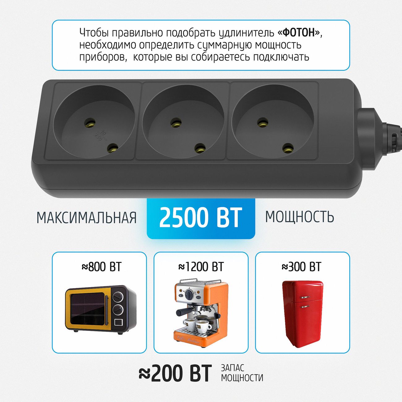Вы можете купить Удлинитель Фотон 22718 10-23 (2м, 3 розетки, черный) в магазинах М.Видео по доступной цене. Удлинитель Фотон 22718 10-23 (2м, 3 розетки, черный): подробное описание, фото и отзывы реальных покупателей, характеристики, возможность скачать инструкции и подобрать аксессуары.