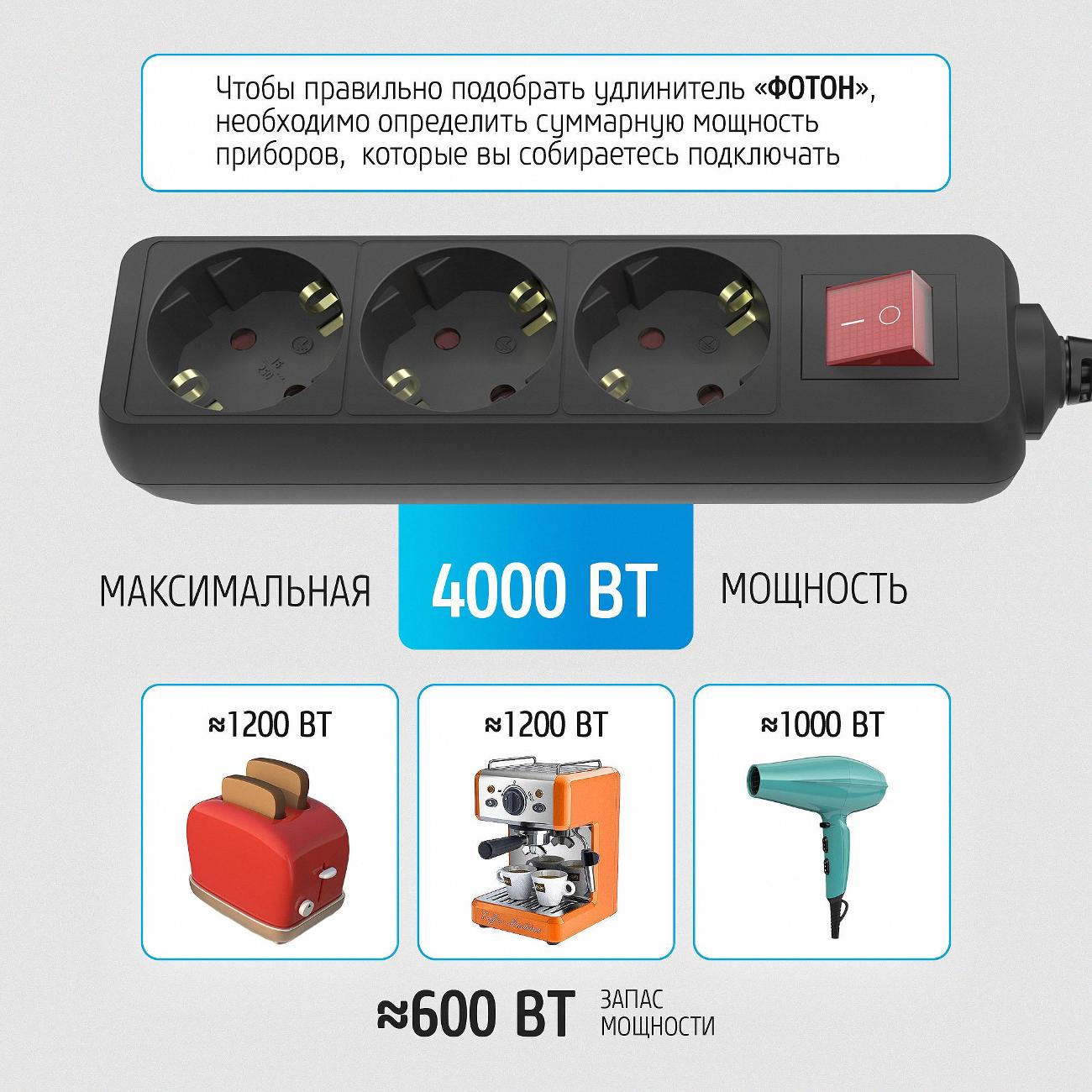 Вы можете купить Удлинитель Фотон 2м 3роз. 16-23ЕS Черный в магазинах М.Видео по доступной цене. Удлинитель Фотон 2м 3роз. 16-23ЕS Черный: подробное описание, фото и отзывы реальных покупателей, характеристики, возможность скачать инструкции и подобрать аксессуары.