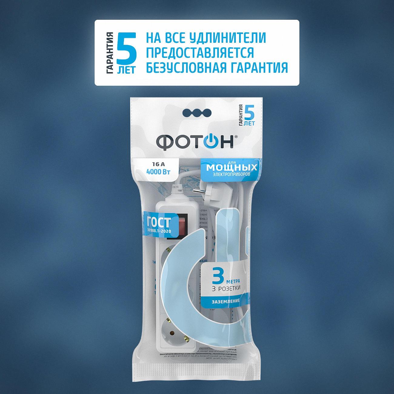 Вы можете купить Удлинитель Фотон 3м 3роз. выкл. с/з 16-33ЕS белый в магазинах М.Видео по доступной цене. Удлинитель Фотон 3м 3роз. выкл. с/з 16-33ЕS белый: подробное описание, фото и отзывы реальных покупателей, характеристики, возможность скачать инструкции и подобрать аксессуары.