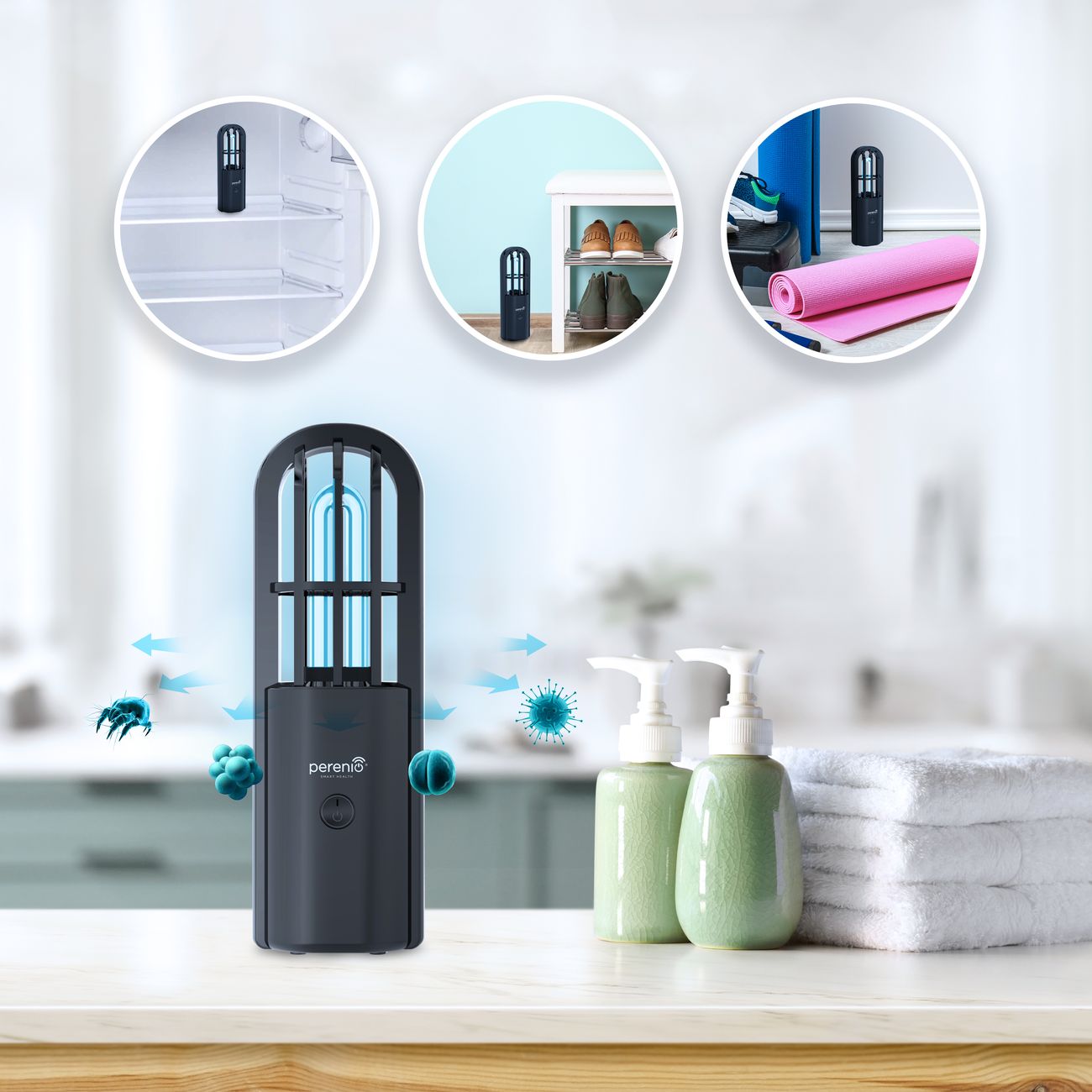 Ультрафиолетовый кварцевый облучатель Perenio PEMUV02 черного цвета для уничтожения различных бактерий и очистки воздуха внутри помещения обладает одним режимом работы. Длина волны составляет 253,7 Нм. В устройстве используется одна ультрафиолетовая лампы с типом цоколя T5. Номинальный срок ее службы составляет 15000 часов. Управление устройством кнопочное. Модель потребляет 2,5 Вт и работает от аккумулятора. Время непрерывного функционирования составляет 700 часов. Облучатель портативный — его можно перемещать внутри помещения. Корпус устройства сделан из комбинированных материалов: пластика и стекла.