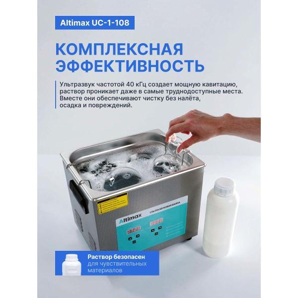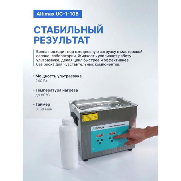 Вы можете купить Ультразвуковая ванна Altimax UC-1-108 с жидкостью для очистки в подарок, 10 л. в магазинах М.Видео по доступной цене. Ультразвуковая ванна Altimax UC-1-108 с жидкостью для очистки в подарок, 10 л.: подробное описание, фото и отзывы реальных покупателей, характеристики, возможность скачать инструкции и подобрать аксессуары.