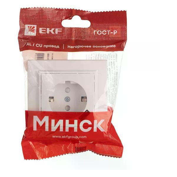 Розетка EKF Минск c USB с заземлением белая. Одноместная розетка с заземлением и портом USB EKF ERR16-028-100-USB используется для подключения приборов к электрической сети.Оснащена винтовым соединением, защитой двух активных контактов.Преимущества и особенности:Корпус изделия выполнен из поликарбоната, устойчивого к ультра-фиолетовому излучению, сохраняющего свой первоначальный вид в течение долгого времени.Высококачественный пластик в основании обладает термостойкостью, не поддерживает горение.Безгалогенное изделие не выделяет токсичных веществ и безопасно для здоровья.Конструкция оснащена контактом, обеспечивающим заземление.Дополнительный порт USB позволит заряжать гаджет без подключения к сетевой розетке.Наличие шторок обеспечивает легкое подключение вилки к розетке и блокирует доступ к контактам розетки других предметов (спиц, карандашей).Технические характеристики:- максимальное напряжение: 230 В;- номинальный ток: 16 А;- контактные зажимы: винтового типа;- минимальная глубина встроенной монтажной коробки: 40 мм.Изделие поставляется в сборе с рамкой, комплектуется инструкцией по монтажу и эксплуатации.. Тип: Розетки сетевые; Серия: EKF Минск; Цвет: Белый; Количество гнёзд: 1; Наличие заземления: Да; Наличие крышки: Нет; Наличие шторки: Да; Наличие USB: Да; Влагозащищённый корпус: Нет; Степень защиты (IP): 20; Вес 0.088; Бренд: EKF; Страна производства: Китай