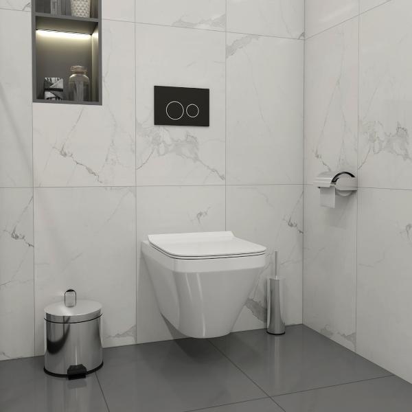 Комплект «Готовое решение» для установки инсталляции с подвесным унитазом включает: -- инсталляция TEYMI AINA 52 T70011 – монтажная рама из стального профиля толщиной 1.5 мм увеличенной ширины 52,5 см с дополнительными вертикальными усиливающими стойками, что позволяет выдерживать нагрузки до 400 кг; -- клавиша смыва TEYMI LINA T70105, цвет ЧЕРНЫЙ МАТОВЫЙ, ОКАНТОВКА ХРОМ; -- унитаз подвесной TEYMI KATI T40701; -- быстросъёмное сиденье с микролифтом; -- полный комплект арматуры для монтажа, включающий в себя уплотнительные кольца и манжеты, трубу смыва, фановый отвод с удлинителем, защитный кожух ревизионного окна с крепежной рамкой, закрывающей панелью и крышкой; -- полный комплект крепежа для установки, а именно: крепеж к стене, шпильки для унитаза, крепежная рамка, соединительные шпильки, толкатели; -- инструкция по установке и обслуживанию. Преимущества комплекта «Готовое решение» для установки инсталляции с подвесным унитазом: -- полная (максимальная) комплектация для установки - больше ничего докупать не придётся; -- все составляющие комплекта идеально подходят друг к другу; -- взаимозаменяемость комплектующих; -- рама покрыта суперпрочной порошковой краской с антикоррозионными свойствами; -- высота рамы может регулироваться с ходом до 20 см с помощью ножек, изготовленных из оцинкованной стали; -- сливной бачок скрытого монтажа изготовлен из современных полимерных материалов и является цельнолитым (бесшовным), что позволяет ему работать без протечек в течение всего периода эксплуатации; -- лёгкость обслуживания сливного бачка достигается благодаря удобному ревизионному окну, скрытому за клавишей смыва; -- клавиша смыва имеет две кнопки и работает в режиме ЭКОНОМ / ПОЛНЫЙ (объёмы смыва 3 / 6 литров); -- гарантия на весь комплект составляет 10 лет, а рама прослужит все 50. Уважаемые покупатели, обращаем ваше внимание на то, что система инсталляции TEYMI AINA 52 может быть также укомплектована другими клавишами смыва или подвесными унитазами от бренда TEYMI (вы можете найти их на этом сайте по указанным артикулам). Предлагаем вам рассмотреть варианты сочетания со следующими клавишами: : HELMI хром T70202CH : HELMI черная T70203BM : HELMI белая T70018WM : LINA хром T70102CH : LINA черная T70103BM : LINA белая T70019WM : AINA хром T70012CH : AINA черная T70013BM : AINA белая T70020WM : KATI хром T70701CH : KATI черная T70702BM : KATI белая T70021WM : ELLIE хром T70022CH : ELLIE черная T70023BM : ELLIE белая T70024WM Также просим обратить взгляд на наши лучшие безободковые подвесные унитазы: : SOLLI T40201 : LINA S T40102 : HELMI S T40302 : HELMI VORTEX T40303 : IVA T40601 : ELLIE T40802 : LINA MEDIA T40105 : KATI T40701 : HANNA PRO T40901 : HELMI S BLACK T40302MB : VITRA PRO T40806 : VITRA T40804 : DEMI T40208 : LINA VORTEX T40110 : RITTA T40809 : LINA PRO T40106 : LINA S BLACK T40111
