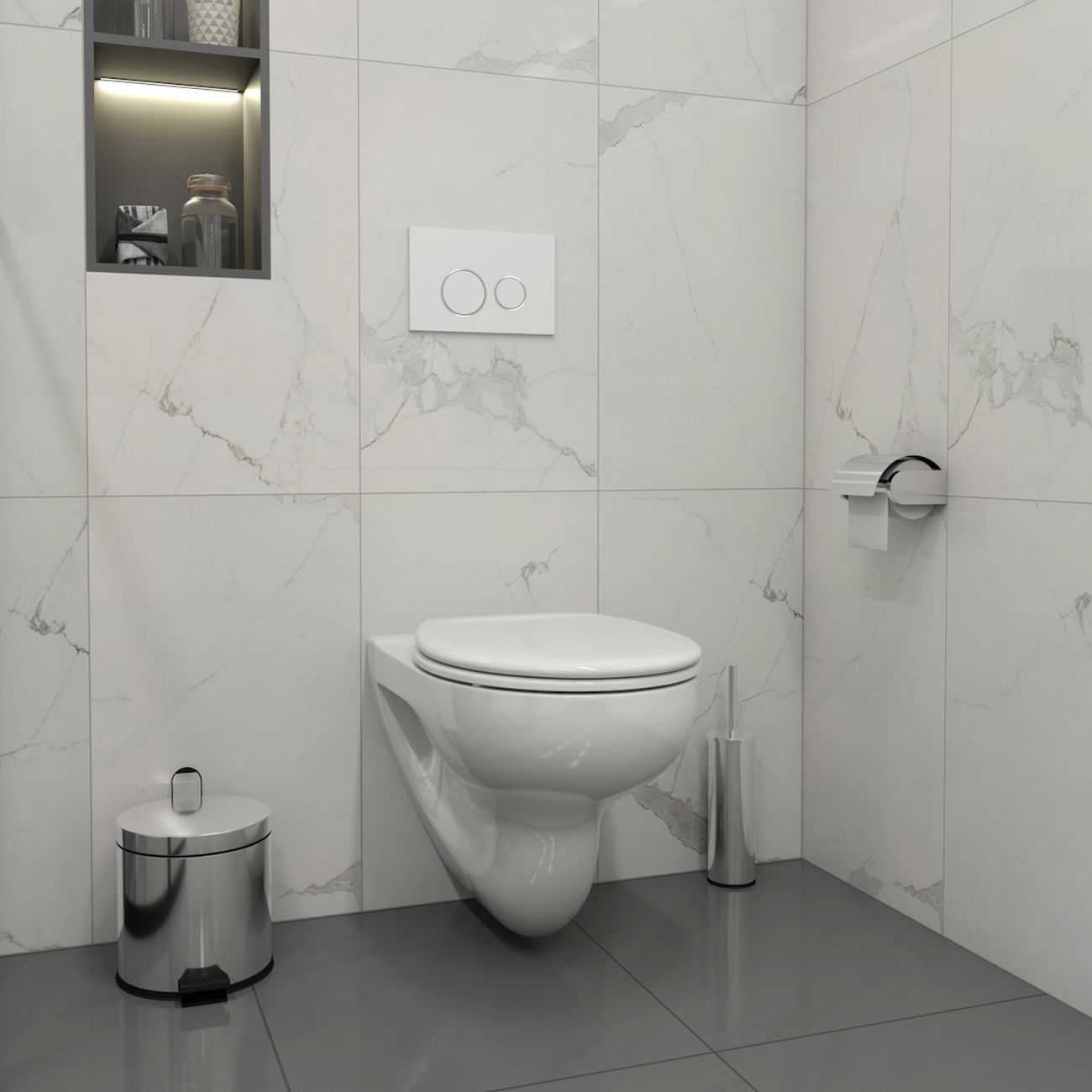 Комплект «Готовое решение» для установки инсталляции с подвесным унитазом включает: -- инсталляция TEYMI AINA 52 T70011 – монтажная рама из стального профиля толщиной 1.5 мм увеличенной ширины 52,5 см с дополнительными вертикальными усиливающими стойками, что позволяет выдерживать нагрузки до 400 кг; -- клавиша смыва TEYMI LINA T70106, цвет БЕЛЫЙ МАТОВЫЙ, ОКАНТОВКА ХРОМ; -- унитаз подвесной TEYMI HANNA PRO T40901; -- быстросъёмное сиденье с микролифтом; -- полный комплект арматуры для монтажа, включающий в себя уплотнительные кольца и манжеты, трубу смыва, фановый отвод с удлинителем, защитный кожух ревизионного окна с крепежной рамкой, закрывающей панелью и крышкой; -- полный комплект крепежа для установки, а именно: крепеж к стене, шпильки для унитаза, крепежная рамка, соединительные шпильки, толкатели; -- инструкция по установке и обслуживанию. Преимущества комплекта «Готовое решение» для установки инсталляции с подвесным унитазом: -- полная (максимальная) комплектация для установки - больше ничего докупать не придётся; -- все составляющие комплекта идеально подходят друг к другу; -- взаимозаменяемость комплектующих; -- рама покрыта суперпрочной порошковой краской с антикоррозионными свойствами; -- высота рамы может регулироваться с ходом до 20 см с помощью ножек, изготовленных из оцинкованной стали; -- сливной бачок скрытого монтажа изготовлен из современных полимерных материалов и является цельнолитым (бесшовным), что позволяет ему работать без протечек в течение всего периода эксплуатации; -- лёгкость обслуживания сливного бачка достигается благодаря удобному ревизионному окну, скрытому за клавишей смыва; -- клавиша смыва имеет две кнопки и работает в режиме ЭКОНОМ / ПОЛНЫЙ (объёмы смыва 3 / 6 литров); -- гарантия на весь комплект составляет 10 лет, а рама прослужит все 50. Уважаемые покупатели, обращаем ваше внимание на то, что система инсталляции TEYMI AINA 52 может быть также укомплектована другими клавишами смыва или подвесными унитазами от бренда TEYMI (вы можете найти их на этом сайте по указанным артикулам). Предлагаем вам рассмотреть варианты сочетания со следующими клавишами: : HELMI хром T70202CH : HELMI черная T70203BM : HELMI белая T70018WM : LINA хром T70102CH : LINA черная T70103BM : LINA белая T70019WM : AINA хром T70012CH : AINA черная T70013BM : AINA белая T70020WM : KATI хром T70701CH : KATI черная T70702BM : KATI белая T70021WM : ELLIE хром T70022CH : ELLIE черная T70023BM : ELLIE белая T70024WM Также просим обратить взгляд на наши лучшие безободковые подвесные унитазы: : SOLLI T40201 : LINA S T40102 : HELMI S T40302 : HELMI VORTEX T40303 : IVA T40601 : ELLIE T40802 : LINA MEDIA T40105 : KATI T40701 : HANNA PRO T40901 : HELMI S BLACK T40302MB : VITRA PRO T40806 : VITRA T40804 : DEMI T40208 : LINA VORTEX T40110 : RITTA T40809 : LINA PRO T40106 : LINA S BLACK T40111