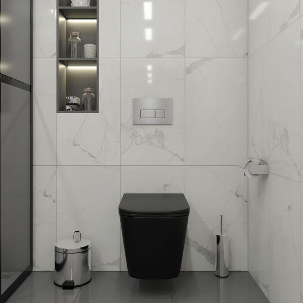 Комплект «Готовое решение» для установки инсталляции с подвесным унитазом: -- инсталляция TEYMI AINA 50 T70033 – монтажная рама из цельного стального профиля прямоугольного сечения, позволяющая выдерживать нагрузки до 400 кг. Габаритная ширина рамы 525 мм; -- клавиша смыва TEYMI HELMI T70204, корпус нержавеюшая сталь, цвет НЕРЖАВЕЮЩАЯ СТАЛЬ МАТОВЫЙ; -- унитаз подвесной TEYMI HELMI S T40302MB черный; -- быстросъёмное сиденье с микролифтом; -- полный комплект арматуры для монтажа, включающий в себя уплотнительные кольца и манжеты, трубу смыва, фановый отвод с удлинителем, защитный кожух ревизионного окна с крепежной рамкой, закрывающей панелью и крышкой; -- полный комплект крепежа для установки, а именно: крепеж к стене, шпильки для унитаза, крепежная рамка, соединительные шпильки, толкатели; -- инструкция по установке и обслуживанию. Преимущества комплекта: -- полная (максимальная) комплектация для установки - больше ничего докупать не придётся; -- все составляющие комплекта идеально подходят друг к другу; -- рама покрыта суперпрочной порошковой краской синего цвета с антикоррозионными свойствами; -- высота монтажной рамы может регулироваться с ходом до 20 см с помощью ножек из оцинкованной стали; -- универсальный монтаж – межосевое расстояние под шпильки для подвесного унитаза 180 и 230 мм – подходит ко всем подвесным унитазам; -- сливной бачок скрытого монтажа, изготовленный из полиэтилена низкого давления, рассчитан на 200 тысяч циклов смыва, а цельнолитая бесшовная конструкция позволит работать без протечек в течение всего периода эксплуатации; -- 2-режимный слив 3 / 6 л с возможностью регулировки; -- лёгкость обслуживания бачка благодаря ревизионному окну, скрытому за клавишей смыва; -- гарантия 10 лет на весь комплект и 50 лет на стальную раму. Размер инсталляции с бачком: высота 1055 мм Х ширина 525 мм Х глубина 96 мм. Уважаемые покупатели, обращаем ваше внимание на то, что система инсталляции TEYMI AINA 50 может быть также укомплектована другими клавишами смыва или подвесными унитазами от бренда TEYMI (вы можете найти их на этом сайте по указанным артикулам). Предлагаем вам рассмотреть варианты сочетания со следующими клавишами: : HELMI хром T70202CH : HELMI черная T70203BM : HELMI белая T70018WM : HELMI нержавеющая сталь T70204 : HELMI черный матовый T70205 : HELMI белый глянцевый T70206 : LINA хром T70102CH : LINA черная T70103BM : LINA белая T70019WM : LINA нержавеющая сталь T70104 : LINA черный матовый T70105 : LINA белый матовый T70106 : AINA хром T70012CH : AINA черная T70013BM : AINA белая T70020WM : AINA нержавеющая сталь T70014 : KATI хром T70701CH : KATI черная T70702BM : KATI белая T70021WM : ELLIE хром T70022CH : ELLIE черная T70023BM : ELLIE белая T70024WM Также просим обратить взгляд на наши лучшие безободковые подвесные унитазы: : SOLLI T40201 : LINA S T40102 : HELMI S T40302 : HELMI VORTEX T40303 : IVA T40601 : ELLIE T40802 : LINA MEDIA T40105 : KATI T40701 : HANNA PRO T40901 : HELMI S BLACK T40302MB : VITRA PRO T40806 : VITRA T40804 : DEMI T40208 : LINA VORTEX T40110 : RITTA T40809 : LINA PRO T40106 : LINA S BLACK T40111