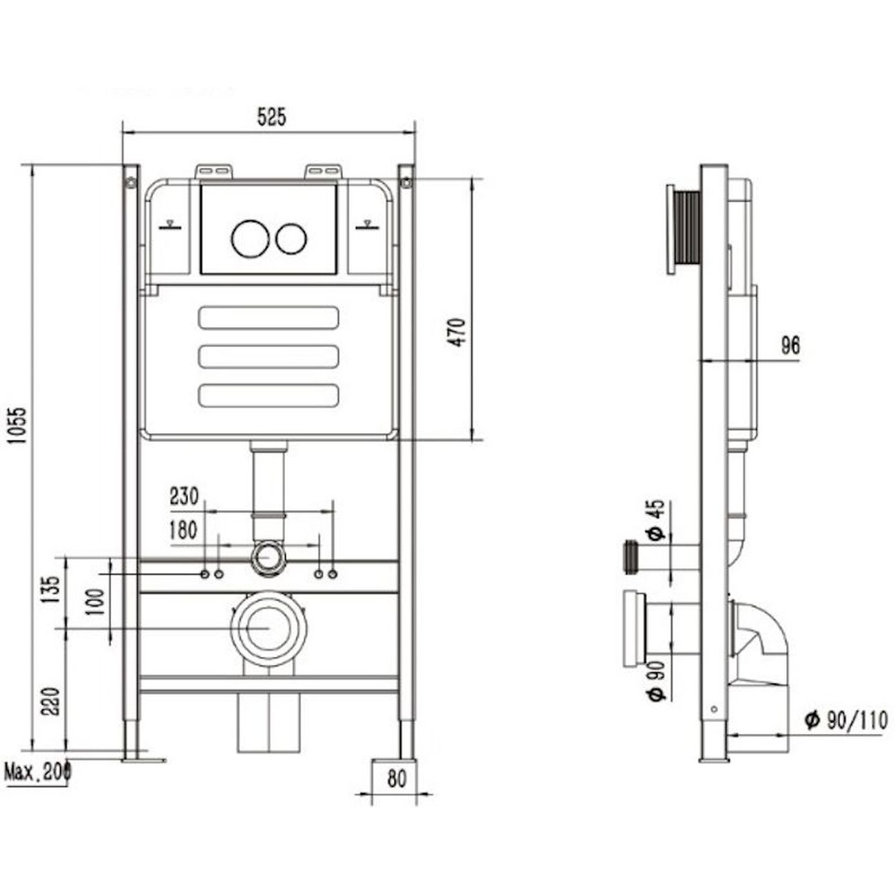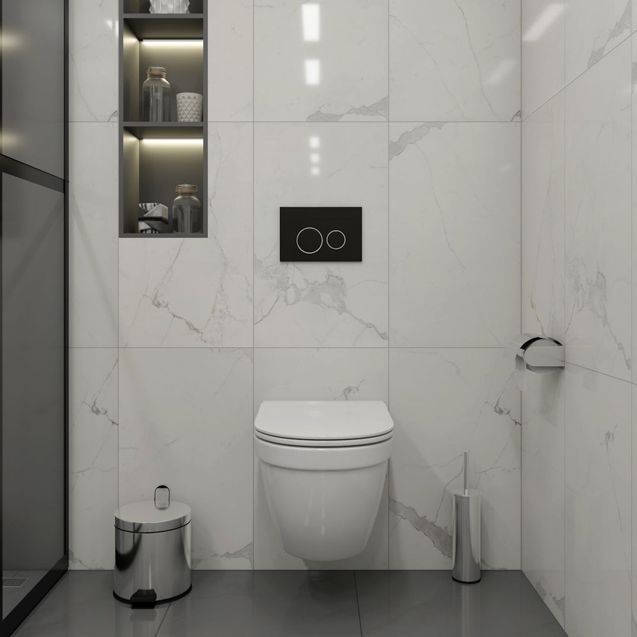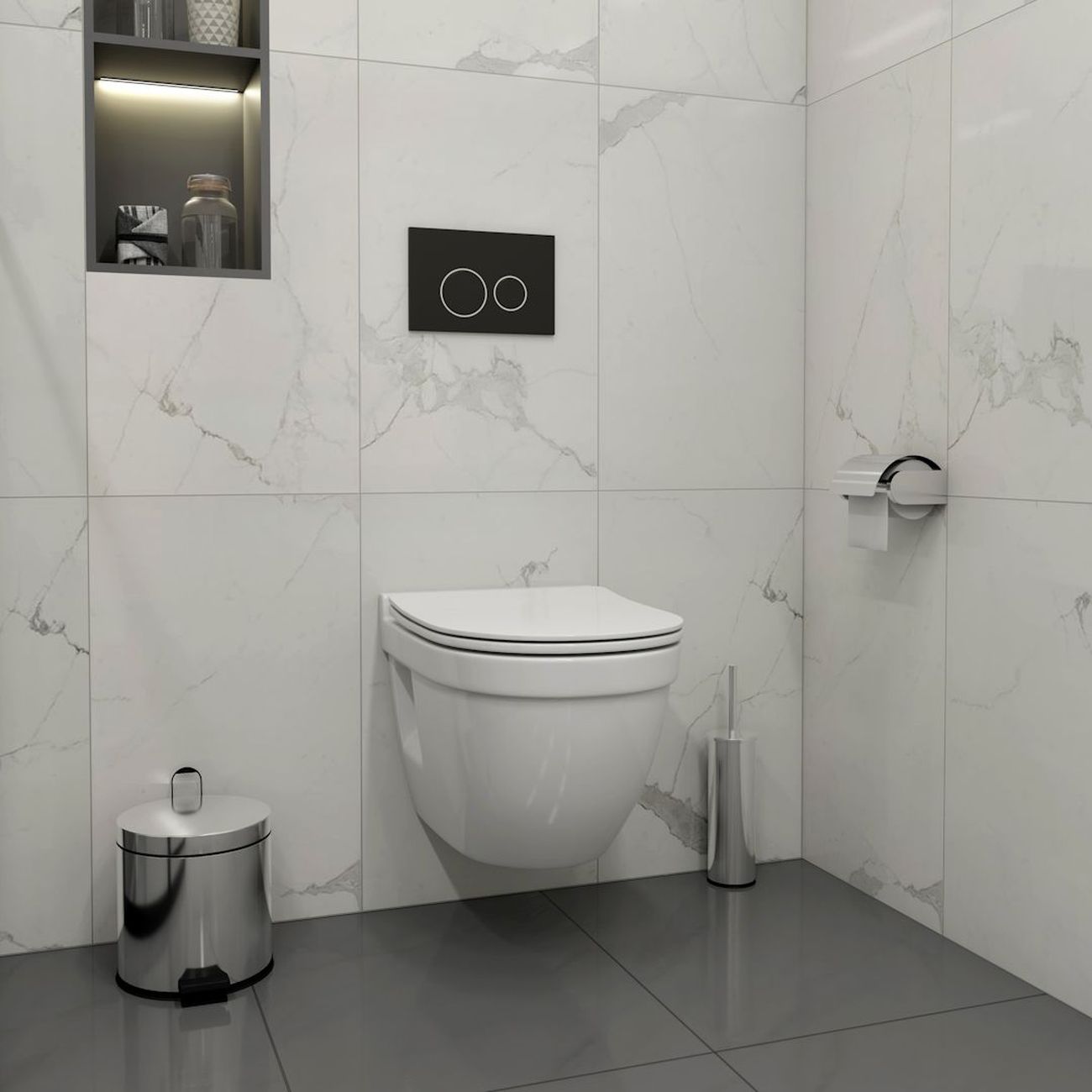 Комплект «Готовое решение» для установки инсталляции с подвесным унитазом: -- инсталляция TEYMI AINA 50 T70033 – монтажная рама из цельного стального профиля прямоугольного сечения, позволяющая выдерживать нагрузки до 400 кг. Габаритная ширина рамы 525 мм; -- клавиша смыва TEYMI LINA T70105, цвет ЧЕРНЫЙ МАТОВЫЙ, ОКАНТОВКА ХРОМ; -- унитаз подвесной TEYMI VITRA PRO T40806; -- быстросъёмное сиденье с микролифтом; -- полный комплект арматуры для монтажа, включающий в себя уплотнительные кольца и манжеты, трубу смыва, фановый отвод с удлинителем, защитный кожух ревизионного окна с крепежной рамкой, закрывающей панелью и крышкой; -- полный комплект крепежа для установки, а именно: крепеж к стене, шпильки для унитаза, крепежная рамка, соединительные шпильки, толкатели; -- инструкция по установке и обслуживанию. Преимущества комплекта: -- полная (максимальная) комплектация для установки - больше ничего докупать не придётся; -- все составляющие комплекта идеально подходят друг к другу; -- рама покрыта суперпрочной порошковой краской синего цвета с антикоррозионными свойствами; -- высота монтажной рамы может регулироваться с ходом до 20 см с помощью ножек из оцинкованной стали; -- универсальный монтаж – межосевое расстояние под шпильки для подвесного унитаза 180 и 230 мм – подходит ко всем подвесным унитазам; -- сливной бачок скрытого монтажа, изготовленный из полиэтилена низкого давления, рассчитан на 200 тысяч циклов смыва, а цельнолитая бесшовная конструкция позволит работать без протечек в течение всего периода эксплуатации; -- 2-режимный слив 3 / 6 л с возможностью регулировки; -- лёгкость обслуживания бачка благодаря ревизионному окну, скрытому за клавишей смыва; -- гарантия 10 лет на весь комплект и 50 лет на стальную раму. Размер инсталляции с бачком: высота 1055 мм Х ширина 525 мм Х глубина 96 мм. Уважаемые покупатели, обращаем ваше внимание на то, что система инсталляции TEYMI AINA 50 может быть также укомплектована другими клавишами смыва или подвесными унитазами от бренда TEYMI (вы можете найти их на этом сайте по указанным артикулам). Предлагаем вам рассмотреть варианты сочетания со следующими клавишами: : HELMI хром T70202CH : HELMI черная T70203BM : HELMI белая T70018WM : HELMI нержавеющая сталь T70204 : HELMI черный матовый T70205 : HELMI белый глянцевый T70206 : LINA хром T70102CH : LINA черная T70103BM : LINA белая T70019WM : LINA нержавеющая сталь T70104 : LINA черный матовый T70105 : LINA белый матовый T70106 : AINA хром T70012CH : AINA черная T70013BM : AINA белая T70020WM : AINA нержавеющая сталь T70014 : KATI хром T70701CH : KATI черная T70702BM : KATI белая T70021WM : ELLIE хром T70022CH : ELLIE черная T70023BM : ELLIE белая T70024WM Также просим обратить взгляд на наши лучшие безободковые подвесные унитазы: : SOLLI T40201 : LINA S T40102 : HELMI S T40302 : HELMI VORTEX T40303 : IVA T40601 : ELLIE T40802 : LINA MEDIA T40105 : KATI T40701 : HANNA PRO T40901 : HELMI S BLACK T40302MB : VITRA PRO T40806 : VITRA T40804 : DEMI T40208 : LINA VORTEX T40110 : RITTA T40809 : LINA PRO T40106 : LINA S BLACK T40111