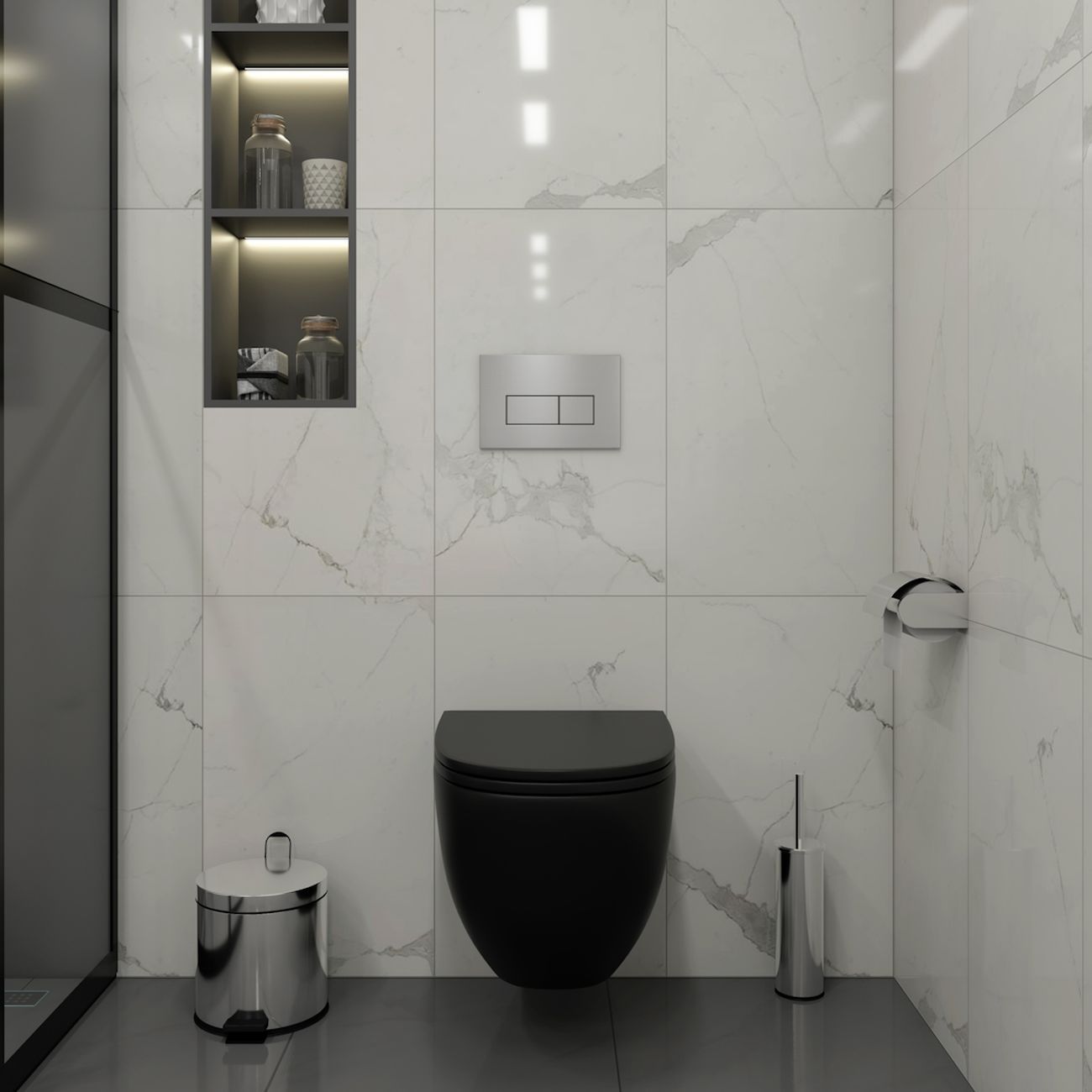 Комплект «Готовое решение» для установки инсталляции с подвесным унитазом: -- инсталляция TEYMI AINA 50 T70033 – монтажная рама из цельного стального профиля прямоугольного сечения, позволяющая выдерживать нагрузки до 400 кг. Габаритная ширина рамы 525 мм; -- клавиша смыва TEYMI HELMI T70204, корпус нержавеюшая сталь, цвет НЕРЖАВЕЮЩАЯ СТАЛЬ МАТОВЫЙ; -- унитаз подвесной TEYMI Lina S Black черный T40111; -- быстросъёмное сиденье с микролифтом; -- полный комплект арматуры для монтажа, включающий в себя уплотнительные кольца и манжеты, трубу смыва, фановый отвод с удлинителем, защитный кожух ревизионного окна с крепежной рамкой, закрывающей панелью и крышкой; -- полный комплект крепежа для установки, а именно: крепеж к стене, шпильки для унитаза, крепежная рамка, соединительные шпильки, толкатели; -- инструкция по установке и обслуживанию. Преимущества комплекта: -- полная (максимальная) комплектация для установки - больше ничего докупать не придётся; -- все составляющие комплекта идеально подходят друг к другу; -- рама покрыта суперпрочной порошковой краской синего цвета с антикоррозионными свойствами; -- высота монтажной рамы может регулироваться с ходом до 20 см с помощью ножек из оцинкованной стали; -- универсальный монтаж – межосевое расстояние под шпильки для подвесного унитаза 180 и 230 мм – подходит ко всем подвесным унитазам; -- сливной бачок скрытого монтажа, изготовленный из полиэтилена низкого давления, рассчитан на 200 тысяч циклов смыва, а цельнолитая бесшовная конструкция позволит работать без протечек в течение всего периода эксплуатации; -- 2-режимный слив 3 / 6 л с возможностью регулировки; -- лёгкость обслуживания бачка благодаря ревизионному окну, скрытому за клавишей смыва; -- гарантия 10 лет на весь комплект и 50 лет на стальную раму. Размер инсталляции с бачком: высота 1055 мм Х ширина 525 мм Х глубина 96 мм. Уважаемые покупатели, обращаем ваше внимание на то, что система инсталляции TEYMI AINA 50 может быть также укомплектована другими клавишами смыва или подвесными унитазами от бренда TEYMI (вы можете найти их на этом сайте по указанным артикулам). Предлагаем вам рассмотреть варианты сочетания со следующими клавишами: : HELMI хром T70202CH : HELMI черная T70203BM : HELMI белая T70018WM : HELMI нержавеющая сталь T70204 : HELMI черный матовый T70205 : HELMI белый глянцевый T70206 : LINA хром T70102CH : LINA черная T70103BM : LINA белая T70019WM : LINA нержавеющая сталь T70104 : LINA черный матовый T70105 : LINA белый матовый T70106 : AINA хром T70012CH : AINA черная T70013BM : AINA белая T70020WM : AINA нержавеющая сталь T70014 : KATI хром T70701CH : KATI черная T70702BM : KATI белая T70021WM : ELLIE хром T70022CH : ELLIE черная T70023BM : ELLIE белая T70024WM Также просим обратить взгляд на наши лучшие безободковые подвесные унитазы: : SOLLI T40201 : LINA S T40102 : HELMI S T40302 : HELMI VORTEX T40303 : IVA T40601 : ELLIE T40802 : LINA MEDIA T40105 : KATI T40701 : HANNA PRO T40901 : HELMI S BLACK T40302MB : VITRA PRO T40806 : VITRA T40804 : DEMI T40208 : LINA VORTEX T40110 : RITTA T40809 : LINA PRO T40106 : LINA S BLACK T40111