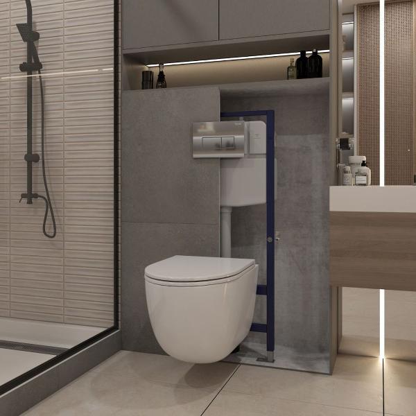 Комплект «Готовое решение» для установки инсталляции с подвесным унитазом: -- инсталляция TEYMI AINA 55 T70035 – монтажная рама из цельного стального профиля прямоугольного сечения, позволяющая выдерживать нагрузки до 400 кг. Габаритная ширина рамы 470 мм; -- клавиша смыва TEYMI HELMI T70202CH, цвет ХРОМ ГЛЯНЕЦ; -- унитаз подвесной безободковый TEYMI LINA VORTEX T40110; -- сиденье с микролифтом; -- полный комплект арматуры для монтажа: уплотнительные кольца, манжеты, труба смыва, фановый отвод с удлинителем, защитный кожух ревизионного окна с крепежной рамкой, закрывающей панелью и крышкой; -- полный комплект крепежа для установки: крепеж к стене, шпильки для унитаза, крепежная рамка, соединительные шпильки, толкатели, фиксаторы; -- инструкция по установке и обслуживанию. Преимущества комплекта: -- полная (максимальная) комплектация для установки - больше ничего докупать не придётся; -- все составляющие комплекта идеально подходят друг к другу; -- рама покрыта суперпрочной порошковой краской синего цвета с антикоррозионными свойствами; -- высота монтажной рамы может регулироваться с помощью ножек из оцинкованной стали; -- универсальный монтаж – межосевое расстояние под шпильки для подвесного унитаза 180 и 230 мм – подходит ко всем подвесным унитазам; -- сливной бачок скрытого монтажа, изготовленный из полиэтилена низкого давления, рассчитан на 200 тысяч циклов смыва, а цельнолитая бесшовная конструкция позволит работать без протечек в течение всего периода эксплуатации; -- 2-режимный слив 3 / 6 л с возможностью регулировки; -- лёгкость обслуживания бачка благодаря ревизионному окну, скрытому за клавишей смыва; -- гарантия 10 лет на весь комплект и 50 лет на стальную раму. Размер изделия: высота 1130 мм (регулируется) Х ширина 470 мм Х глубина 102 мм. Уважаемые покупатели, обращаем ваше внимание на то, что система инсталляции TEYMI AINA 55 может быть также укомплектована другими клавишами смыва или подвесными унитазами от бренда TEYMI (вы можете найти их на этом сайте по указанным артикулам). Предлагаем вам рассмотреть варианты сочетания со следующими клавишами: : HELMI хром T70202CH : HELMI черная T70203BM : HELMI белая T70018WM : HELMI нержавеющая сталь T70204 : HELMI черный матовый T70205 : HELMI белый глянцевый T70206 : LINA хром T70102CH : LINA черная T70103BM : LINA белая T70019WM : LINA нержавеющая сталь T70104 : LINA черный матовый T70105 : LINA белый матовый T70106 : AINA хром T70012CH : AINA черная T70013BM : AINA белая T70020WM : AINA нержавеющая сталь T70014 : KATI хром T70701CH : KATI черная T70702BM : KATI белая T70021WM : ELLIE хром T70022CH : ELLIE черная T70023BM : ELLIE белая T70024WM Также просим обратить взгляд на наши лучшие безободковые подвесные унитазы: : SOLLI T40201 : LINA S T40102 : HELMI S T40302 : HELMI VORTEX T40303 : IVA T40601 : ELLIE T40802 : LINA MEDIA T40105 : KATI T40701 : HANNA PRO T40901 : HELMI S BLACK T40302MB : VITRA PRO T40806 : VITRA T40804 : DEMI T40208 : LINA VORTEX T40110 : RITTA T40809 : LINA PRO T40106 : LINA S BLACK T40111
