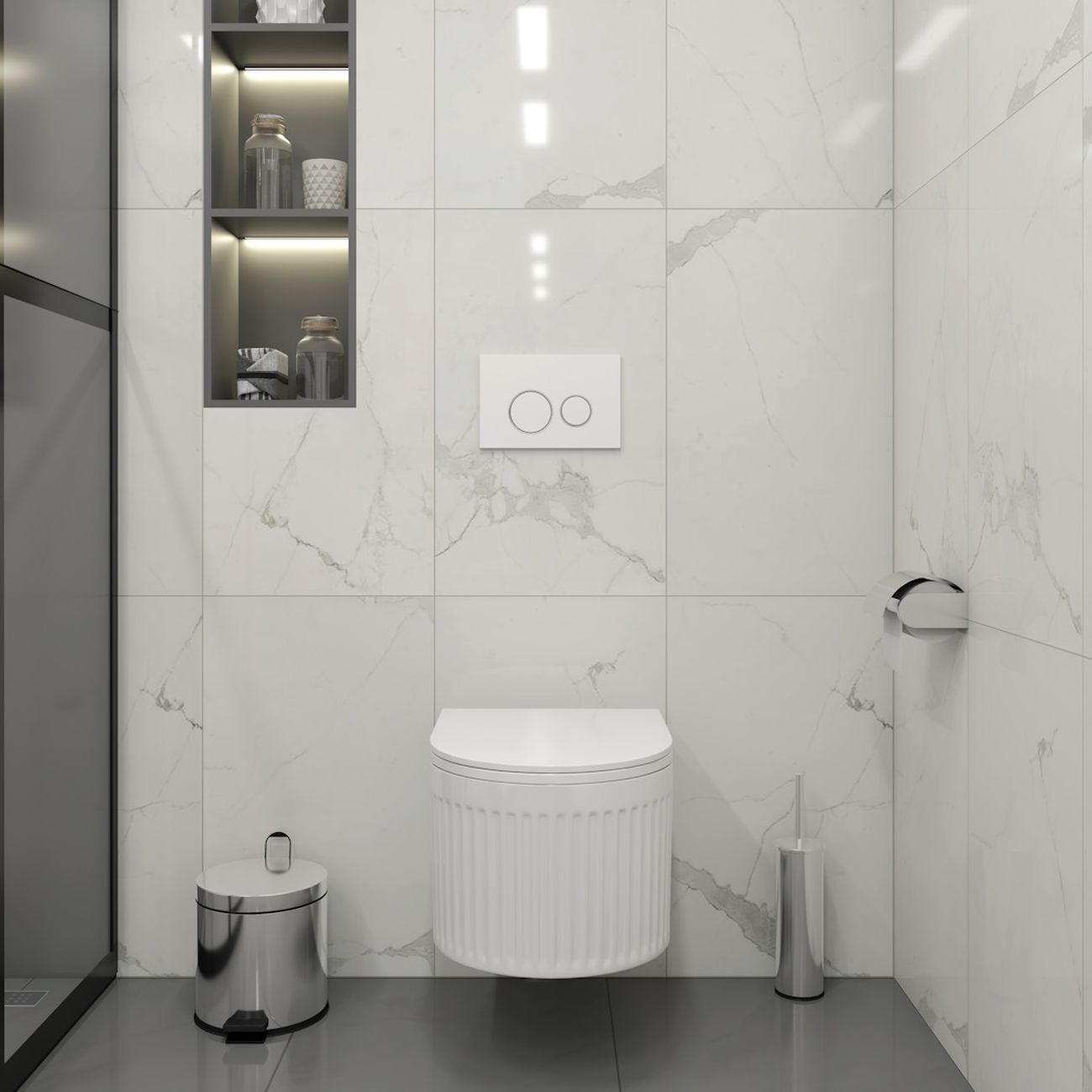 Комплект «Готовое решение» для установки инсталляции с подвесным унитазом включает: -- инсталляция TEYMI AINA 52 T70011 – монтажная рама из стального профиля толщиной 1.5 мм увеличенной ширины 52,5 см с дополнительными вертикальными усиливающими стойками, что позволяет выдерживать нагрузки до 400 кг; -- клавиша смыва TEYMI LINA T70106, цвет БЕЛЫЙ МАТОВЫЙ, ОКАНТОВКА ХРОМ; -- унитаз подвесной TEYMI MARTTA VORTEX T42101; -- быстросъёмное сиденье с микролифтом; -- полный комплект арматуры для монтажа, включающий в себя уплотнительные кольца и манжеты, трубу смыва, фановый отвод с удлинителем, защитный кожух ревизионного окна с крепежной рамкой, закрывающей панелью и крышкой; -- полный комплект крепежа для установки, а именно: крепеж к стене, шпильки для унитаза, крепежная рамка, соединительные шпильки, толкатели; -- инструкция по установке и обслуживанию. Преимущества комплекта «Готовое решение» для установки инсталляции с подвесным унитазом: -- полная (максимальная) комплектация для установки - больше ничего докупать не придётся; -- все составляющие комплекта идеально подходят друг к другу; -- взаимозаменяемость комплектующих; -- рама покрыта суперпрочной порошковой краской с антикоррозионными свойствами; -- высота рамы может регулироваться с ходом до 20 см с помощью ножек, изготовленных из оцинкованной стали; -- сливной бачок скрытого монтажа изготовлен из современных полимерных материалов и является цельнолитым (бесшовным), что позволяет ему работать без протечек в течение всего периода эксплуатации; -- лёгкость обслуживания сливного бачка достигается благодаря удобному ревизионному окну, скрытому за клавишей смыва; -- клавиша смыва имеет две кнопки и работает в режиме ЭКОНОМ / ПОЛНЫЙ (объёмы смыва 3 / 6 литров); -- гарантия на весь комплект составляет 10 лет, а рама прослужит все 50. Уважаемые покупатели, обращаем ваше внимание на то, что система инсталляции TEYMI AINA 52 может быть также укомплектована другими клавишами смыва или подвесными унитазами от бренда TEYMI (вы можете найти их на этом сайте по указанным артикулам). Предлагаем вам рассмотреть варианты сочетания со следующими клавишами: : HELMI хром T70202CH : HELMI черная T70203BM : HELMI белая T70018WM : LINA хром T70102CH : LINA черная T70103BM : LINA белая T70019WM : AINA хром T70012CH : AINA черная T70013BM : AINA белая T70020WM : KATI хром T70701CH : KATI черная T70702BM : KATI белая T70021WM : ELLIE хром T70022CH : ELLIE черная T70023BM : ELLIE белая T70024WM Также просим обратить взгляд на наши лучшие безободковые подвесные унитазы: : SOLLI T40201 : LINA S T40102 : HELMI S T40302 : HELMI VORTEX T40303 : IVA T40601 : ELLIE T40802 : LINA MEDIA T40105 : KATI T40701 : HANNA PRO T40901 : HELMI S BLACK T40302MB : VITRA PRO T40806 : VITRA T40804 : DEMI T40208 : LINA VORTEX T40110 : RITTA T40809 : LINA PRO T40106 : LINA S BLACK T40111