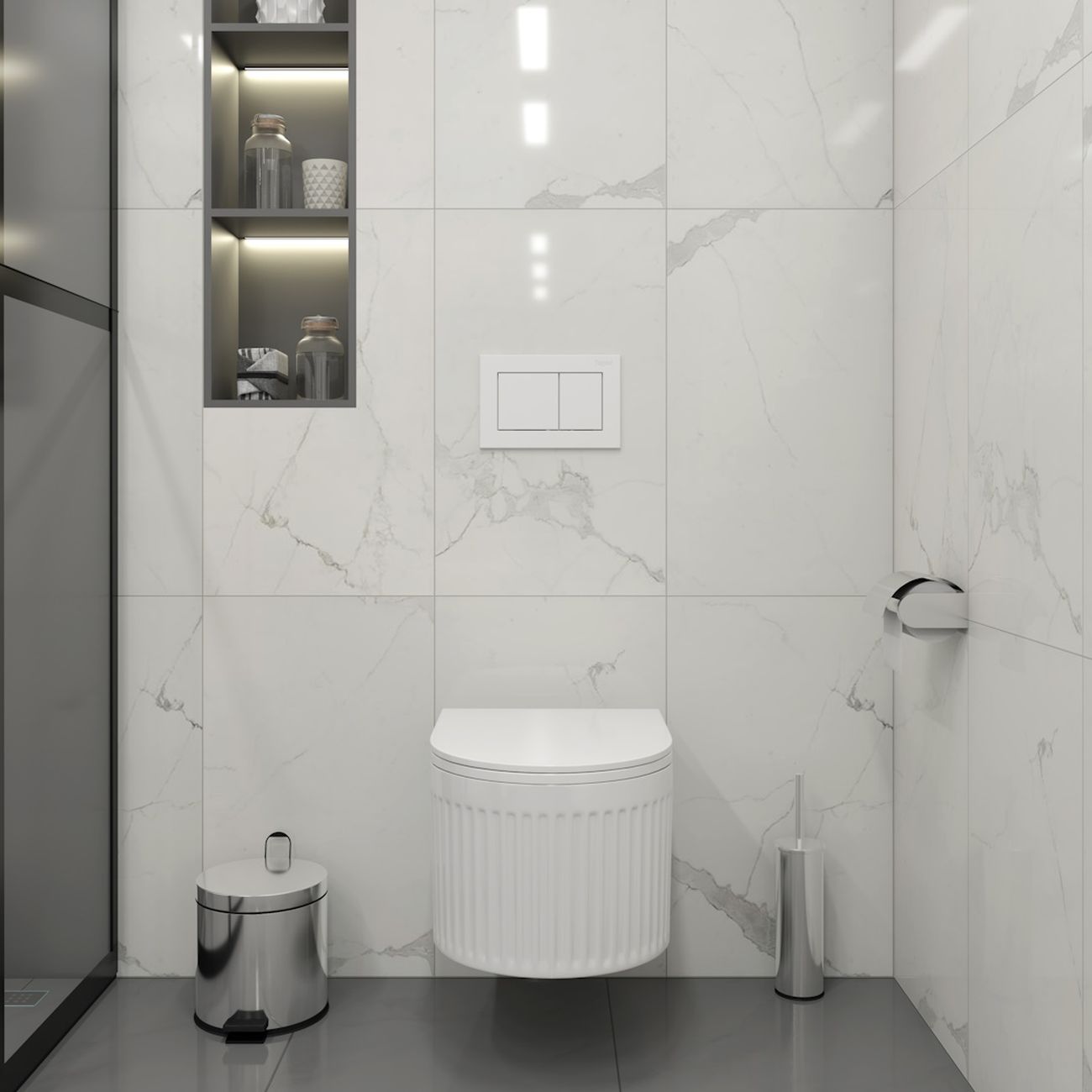 Комплект «Готовое решение» для установки инсталляции с подвесным унитазом включает: -- инсталляция TEYMI AINA 52 T70011 – монтажная рама из стального профиля толщиной 1.5 мм увеличенной ширины 52,5 см с дополнительными вертикальными усиливающими стойками, что позволяет выдерживать нагрузки до 400 кг; -- клавиша смыва TEYMI AINA T70020WM, цвет БЕЛЫЙ МАТОВЫЙ; -- унитаз подвесной TEYMI MARTTA VORTEX T42101; -- быстросъёмное сиденье с микролифтом; -- полный комплект арматуры для монтажа, включающий в себя уплотнительные кольца и манжеты, трубу смыва, фановый отвод с удлинителем, защитный кожух ревизионного окна с крепежной рамкой, закрывающей панелью и крышкой; -- полный комплект крепежа для установки, а именно: крепеж к стене, шпильки для унитаза, крепежная рамка, соединительные шпильки, толкатели; -- инструкция по установке и обслуживанию. Преимущества комплекта «Готовое решение» для установки инсталляции с подвесным унитазом: -- полная (максимальная) комплектация для установки - больше ничего докупать не придётся; -- все составляющие комплекта идеально подходят друг к другу; -- взаимозаменяемость комплектующих; -- рама покрыта суперпрочной порошковой краской с антикоррозионными свойствами; -- высота рамы может регулироваться с ходом до 20 см с помощью ножек, изготовленных из оцинкованной стали; -- сливной бачок скрытого монтажа изготовлен из современных полимерных материалов и является цельнолитым (бесшовным), что позволяет ему работать без протечек в течение всего периода эксплуатации; -- лёгкость обслуживания сливного бачка достигается благодаря удобному ревизионному окну, скрытому за клавишей смыва; -- клавиша смыва имеет две кнопки и работает в режиме ЭКОНОМ / ПОЛНЫЙ (объёмы смыва 3 / 6 литров); -- гарантия на весь комплект составляет 10 лет, а рама прослужит все 50. Уважаемые покупатели, обращаем ваше внимание на то, что система инсталляции TEYMI AINA 52 может быть также укомплектована другими клавишами смыва или подвесными унитазами от бренда TEYMI (вы можете найти их на этом сайте по указанным артикулам). Предлагаем вам рассмотреть варианты сочетания со следующими клавишами: : HELMI хром T70202CH : HELMI черная T70203BM : HELMI белая T70018WM : LINA хром T70102CH : LINA черная T70103BM : LINA белая T70019WM : AINA хром T70012CH : AINA черная T70013BM : AINA белая T70020WM : KATI хром T70701CH : KATI черная T70702BM : KATI белая T70021WM : ELLIE хром T70022CH : ELLIE черная T70023BM : ELLIE белая T70024WM Также просим обратить взгляд на наши лучшие безободковые подвесные унитазы: : SOLLI T40201 : LINA S T40102 : HELMI S T40302 : HELMI VORTEX T40303 : IVA T40601 : ELLIE T40802 : LINA MEDIA T40105 : KATI T40701 : HANNA PRO T40901 : HELMI S BLACK T40302MB : VITRA PRO T40806 : VITRA T40804 : DEMI T40208 : LINA VORTEX T40110 : RITTA T40809 : LINA PRO T40106 : LINA S BLACK T40111