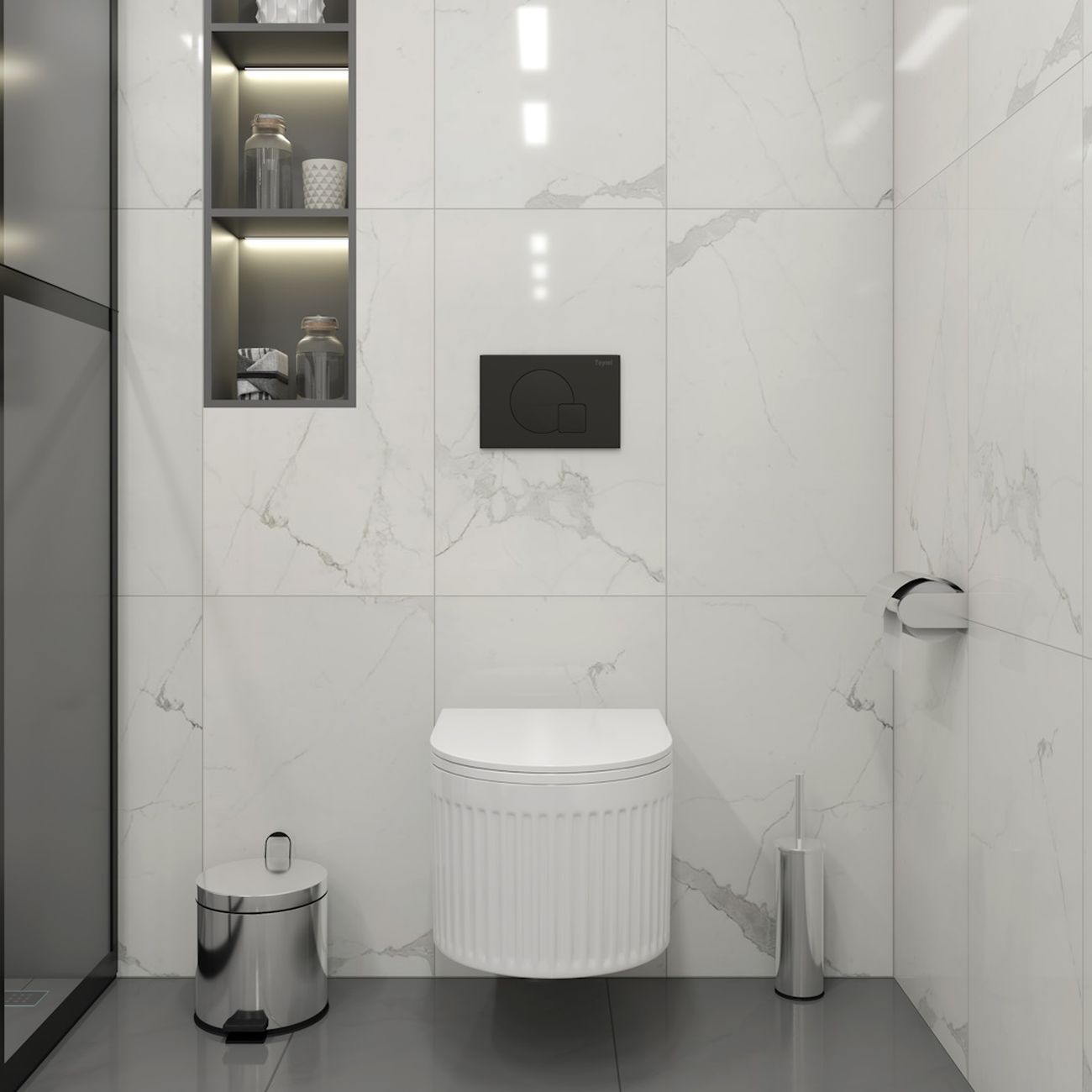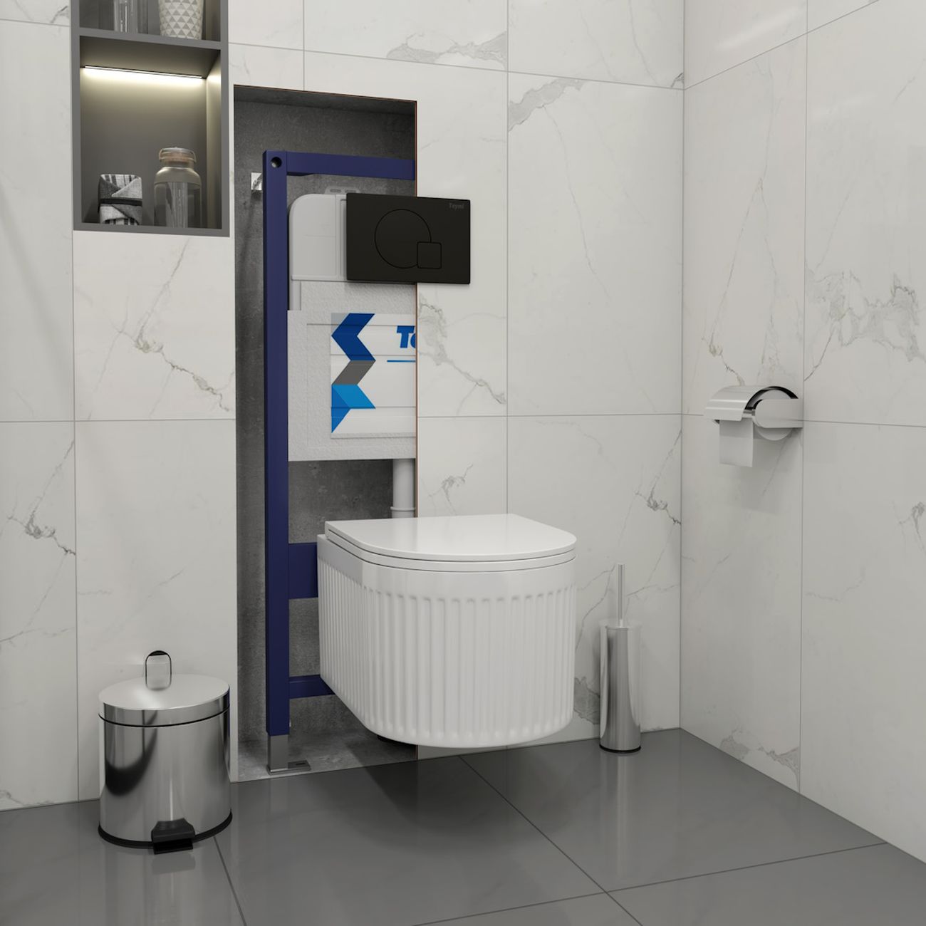 Комплект «Готовое решение» для установки инсталляции с подвесным унитазом включает: -- инсталляция TEYMI AINA 52 T70011 – монтажная рама из стального профиля толщиной 1.5 мм увеличенной ширины 52,5 см с дополнительными вертикальными усиливающими стойками, что позволяет выдерживать нагрузки до 400 кг; -- клавиша смыва TEYMI ELLIE T70023BM, цвет ЧЕРНЫЙ МАТОВЫЙ; -- унитаз подвесной TEYMI MARTTA VORTEX T42101; -- быстросъёмное сиденье с микролифтом; -- полный комплект арматуры для монтажа, включающий в себя уплотнительные кольца и манжеты, трубу смыва, фановый отвод с удлинителем, защитный кожух ревизионного окна с крепежной рамкой, закрывающей панелью и крышкой; -- полный комплект крепежа для установки, а именно: крепеж к стене, шпильки для унитаза, крепежная рамка, соединительные шпильки, толкатели; -- инструкция по установке и обслуживанию. Преимущества комплекта «Готовое решение» для установки инсталляции с подвесным унитазом: -- полная (максимальная) комплектация для установки - больше ничего докупать не придётся; -- все составляющие комплекта идеально подходят друг к другу; -- взаимозаменяемость комплектующих; -- рама покрыта суперпрочной порошковой краской с антикоррозионными свойствами; -- высота рамы может регулироваться с ходом до 20 см с помощью ножек, изготовленных из оцинкованной стали; -- сливной бачок скрытого монтажа изготовлен из современных полимерных материалов и является цельнолитым (бесшовным), что позволяет ему работать без протечек в течение всего периода эксплуатации; -- лёгкость обслуживания сливного бачка достигается благодаря удобному ревизионному окну, скрытому за клавишей смыва; -- клавиша смыва имеет две кнопки и работает в режиме ЭКОНОМ / ПОЛНЫЙ (объёмы смыва 3 / 6 литров); -- гарантия на весь комплект составляет 10 лет, а рама прослужит все 50. Уважаемые покупатели, обращаем ваше внимание на то, что система инсталляции TEYMI AINA 52 может быть также укомплектована другими клавишами смыва или подвесными унитазами от бренда TEYMI (вы можете найти их на этом сайте по указанным артикулам). Предлагаем вам рассмотреть варианты сочетания со следующими клавишами: : HELMI хром T70202CH : HELMI черная T70203BM : HELMI белая T70018WM : LINA хром T70102CH : LINA черная T70103BM : LINA белая T70019WM : AINA хром T70012CH : AINA черная T70013BM : AINA белая T70020WM : KATI хром T70701CH : KATI черная T70702BM : KATI белая T70021WM : ELLIE хром T70022CH : ELLIE черная T70023BM : ELLIE белая T70024WM Также просим обратить взгляд на наши лучшие безободковые подвесные унитазы: : SOLLI T40201 : LINA S T40102 : HELMI S T40302 : HELMI VORTEX T40303 : IVA T40601 : ELLIE T40802 : LINA MEDIA T40105 : KATI T40701 : HANNA PRO T40901 : HELMI S BLACK T40302MB : VITRA PRO T40806 : VITRA T40804 : DEMI T40208 : LINA VORTEX T40110 : RITTA T40809 : LINA PRO T40106 : LINA S BLACK T40111