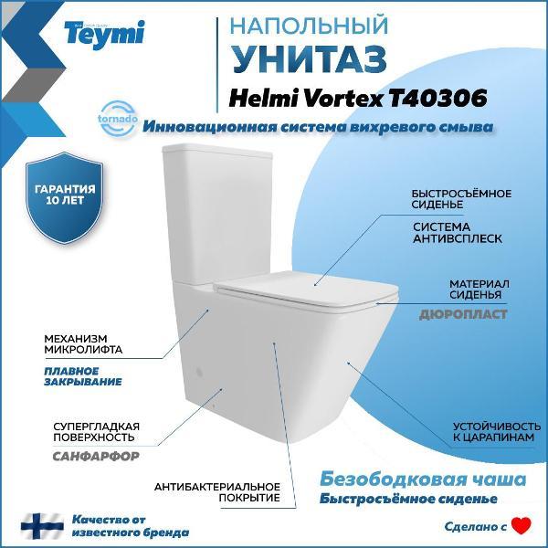 Вы можете купить Унитаз Teymi Helmi Vortex T40306 в магазинах М.Видео по доступной цене. Унитаз Teymi Helmi Vortex T40306: подробное описание, фото и отзывы реальных покупателей, характеристики, возможность скачать инструкции и подобрать аксессуары.