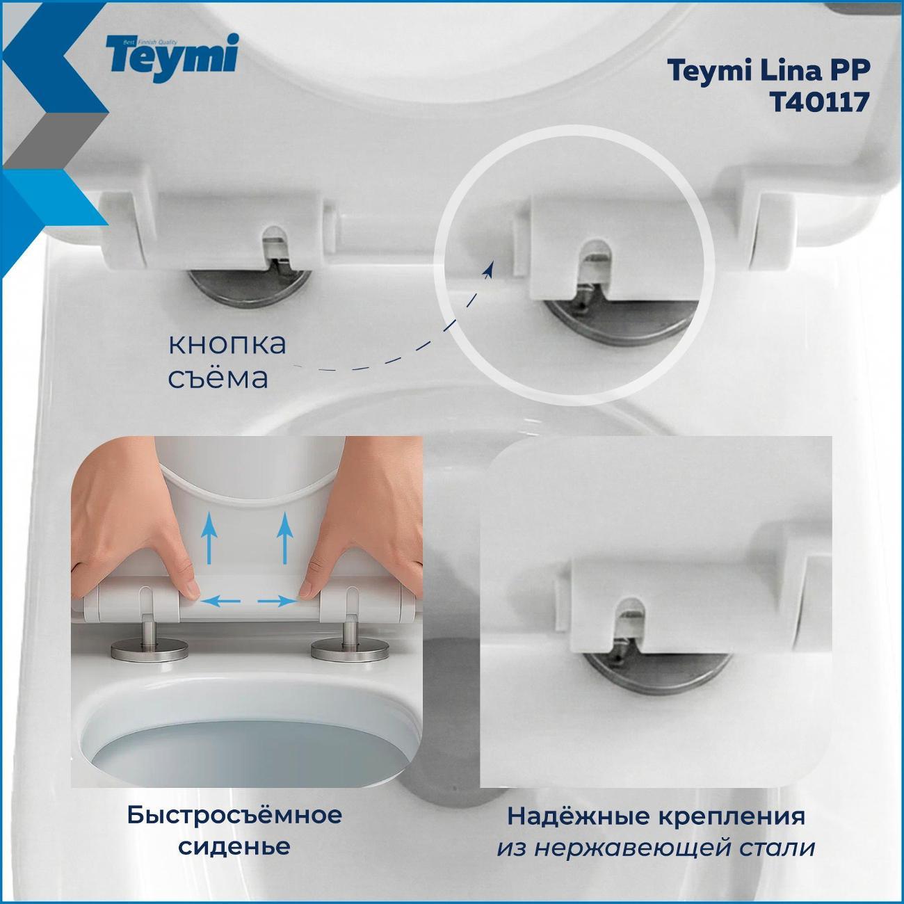 Вы можете купить Унитаз Teymi Lina PP T40117 в магазинах М.Видео по доступной цене. Унитаз Teymi Lina PP T40117: подробное описание, фото и отзывы реальных покупателей, характеристики, возможность скачать инструкции и подобрать аксессуары.