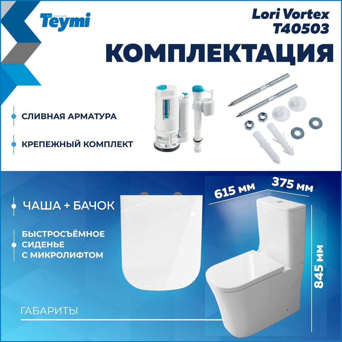 Вы можете купить Унитаз Teymi Lori Vortex T40503 в магазинах М.Видео по доступной цене. Унитаз Teymi Lori Vortex T40503: подробное описание, фото и отзывы реальных покупателей, характеристики, возможность скачать инструкции и подобрать аксессуары.