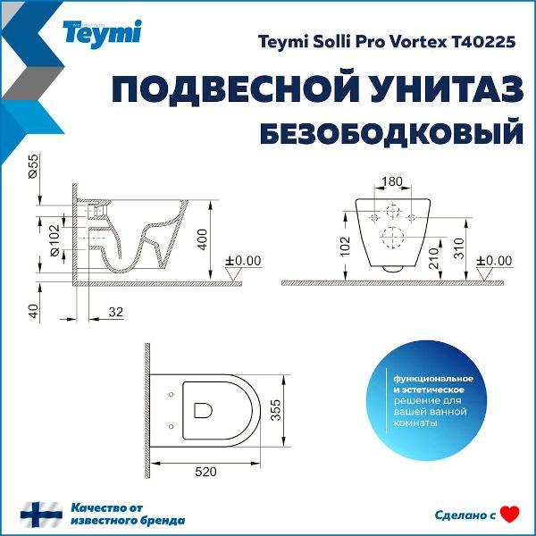 Вы можете купить Унитаз Teymi Solli Pro T40225 в магазинах М.Видео по доступной цене. Унитаз Teymi Solli Pro T40225: подробное описание, фото и отзывы реальных покупателей, характеристики, возможность скачать инструкции и подобрать аксессуары.