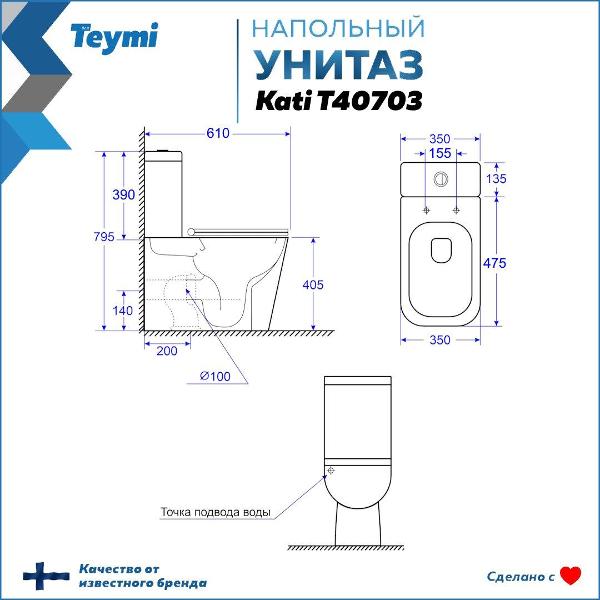 Вы можете купить Унитаз Teymi T40703 в магазинах М.Видео по доступной цене. Унитаз Teymi T40703: подробное описание, фото и отзывы реальных покупателей, характеристики, возможность скачать инструкции и подобрать аксессуары.
