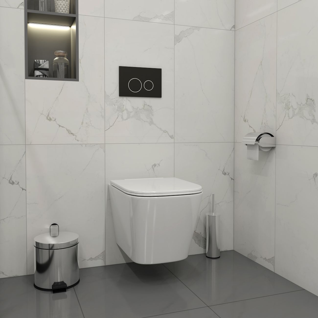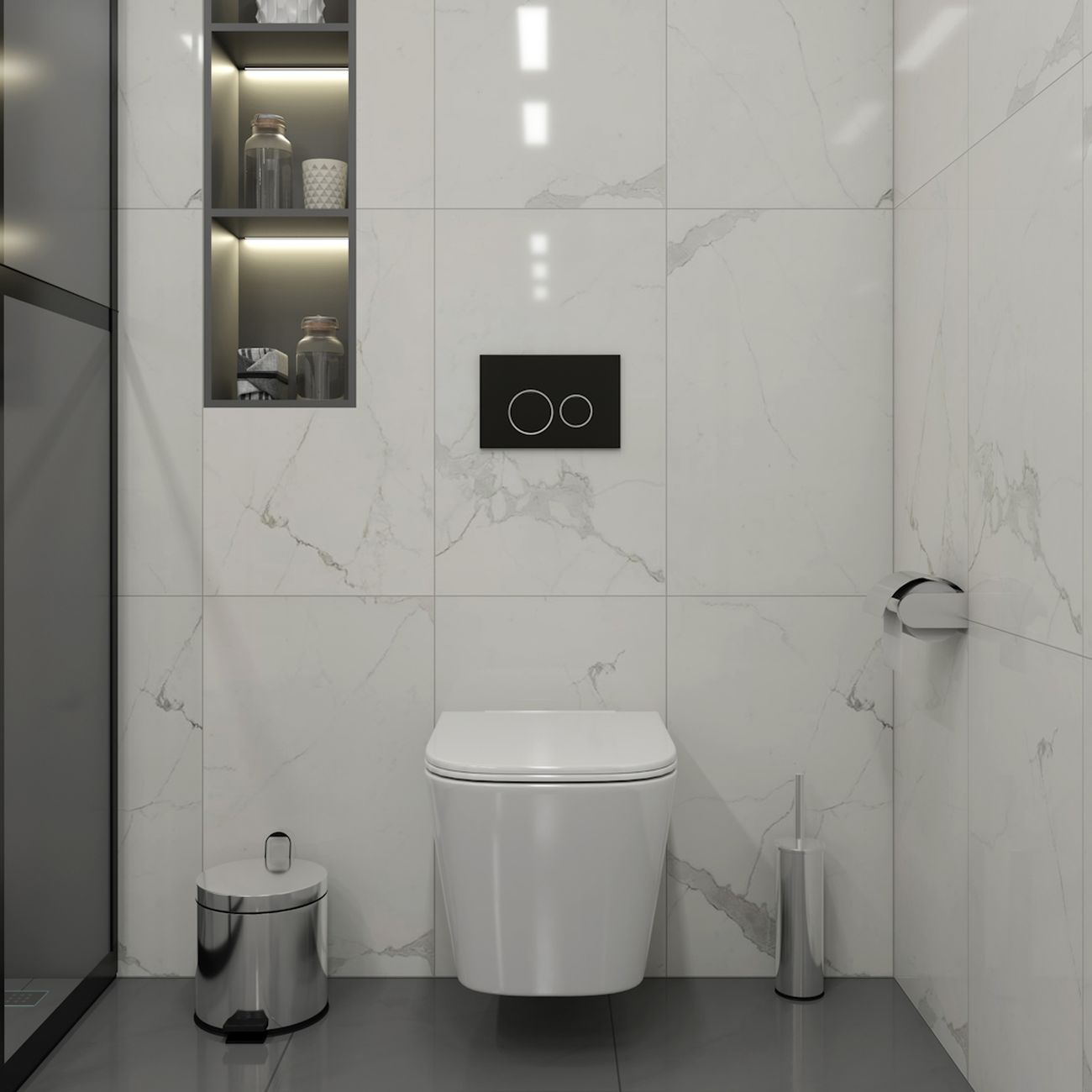 Комплект «Готовое решение» для установки инсталляции с подвесным унитазом включает: -- инсталляция TEYMI AINA 52 T70011 – монтажная рама из стального профиля толщиной 1.5 мм увеличенной ширины 52,5 см с дополнительными вертикальными усиливающими стойками, что позволяет выдерживать нагрузки до 400 кг; -- клавиша смыва TEYMI LINA T70105, цвет ЧЕРНЫЙ МАТОВЫЙ, ОКАНТОВКА ХРОМ; -- унитаз подвесной TEYMI HELMI S T40302; -- быстросъёмное сиденье с микролифтом; -- полный комплект арматуры для монтажа, включающий в себя уплотнительные кольца и манжеты, трубу смыва, фановый отвод с удлинителем, защитный кожух ревизионного окна с крепежной рамкой, закрывающей панелью и крышкой; -- полный комплект крепежа для установки, а именно: крепеж к стене, шпильки для унитаза, крепежная рамка, соединительные шпильки, толкатели; -- инструкция по установке и обслуживанию. Преимущества комплекта «Готовое решение» для установки инсталляции с подвесным унитазом: -- полная (максимальная) комплектация для установки - больше ничего докупать не придётся; -- все составляющие комплекта идеально подходят друг к другу; -- взаимозаменяемость комплектующих; -- рама покрыта суперпрочной порошковой краской с антикоррозионными свойствами; -- высота рамы может регулироваться с ходом до 20 см с помощью ножек, изготовленных из оцинкованной стали; -- сливной бачок скрытого монтажа изготовлен из современных полимерных материалов и является цельнолитым (бесшовным), что позволяет ему работать без протечек в течение всего периода эксплуатации; -- лёгкость обслуживания сливного бачка достигается благодаря удобному ревизионному окну, скрытому за клавишей смыва; -- клавиша смыва имеет две кнопки и работает в режиме ЭКОНОМ / ПОЛНЫЙ (объёмы смыва 3 / 6 литров); -- гарантия на весь комплект составляет 10 лет, а рама прослужит все 50. Уважаемые покупатели, обращаем ваше внимание на то, что система инсталляции TEYMI AINA 52 может быть также укомплектована другими клавишами смыва или подвесными унитазами от бренда TEYMI (вы можете найти их на этом сайте по указанным артикулам). Предлагаем вам рассмотреть варианты сочетания со следующими клавишами: : HELMI хром T70202CH : HELMI черная T70203BM : HELMI белая T70018WM : LINA хром T70102CH : LINA черная T70103BM : LINA белая T70019WM : AINA хром T70012CH : AINA черная T70013BM : AINA белая T70020WM : KATI хром T70701CH : KATI черная T70702BM : KATI белая T70021WM : ELLIE хром T70022CH : ELLIE черная T70023BM : ELLIE белая T70024WM Также просим обратить взгляд на наши лучшие безободковые подвесные унитазы: : SOLLI T40201 : LINA S T40102 : HELMI S T40302 : HELMI VORTEX T40303 : IVA T40601 : ELLIE T40802 : LINA MEDIA T40105 : KATI T40701 : HANNA PRO T40901 : HELMI S BLACK T40302MB : VITRA PRO T40806 : VITRA T40804 : DEMI T40208 : LINA VORTEX T40110 : RITTA T40809 : LINA PRO T40106 : LINA S BLACK T40111