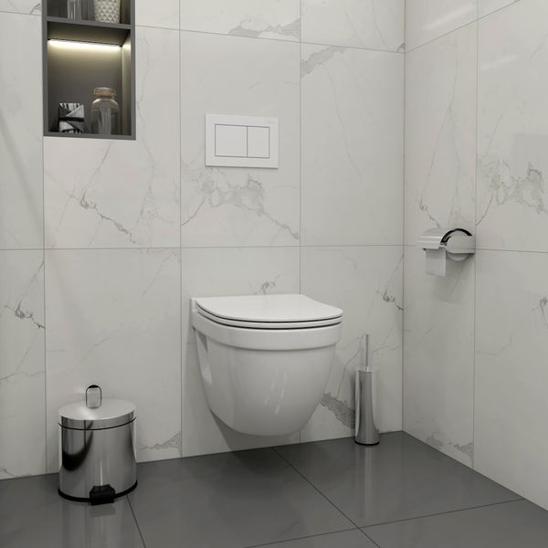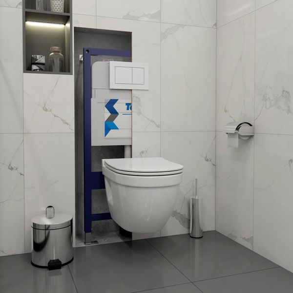 Комплект «Готовое решение» для установки инсталляции с подвесным унитазом включает: -- инсталляция TEYMI AINA 52 T70011 – монтажная рама из стального профиля толщиной 1.5 мм увеличенной ширины 52,5 см с дополнительными вертикальными усиливающими стойками, что позволяет выдерживать нагрузки до 400 кг; -- клавиша смыва TEYMI AINA T70020WM, цвет БЕЛЫЙ МАТОВЫЙ; -- унитаз подвесной TEYMI VITRA PRO T40806; -- быстросъёмное сиденье с микролифтом; -- полный комплект арматуры для монтажа, включающий в себя уплотнительные кольца и манжеты, трубу смыва, фановый отвод с удлинителем, защитный кожух ревизионного окна с крепежной рамкой, закрывающей панелью и крышкой; -- полный комплект крепежа для установки, а именно: крепеж к стене, шпильки для унитаза, крепежная рамка, соединительные шпильки, толкатели; -- инструкция по установке и обслуживанию. Преимущества комплекта «Готовое решение» для установки инсталляции с подвесным унитазом: -- полная (максимальная) комплектация для установки - больше ничего докупать не придётся; -- все составляющие комплекта идеально подходят друг к другу; -- взаимозаменяемость комплектующих; -- рама покрыта суперпрочной порошковой краской с антикоррозионными свойствами; -- высота рамы может регулироваться с ходом до 20 см с помощью ножек, изготовленных из оцинкованной стали; -- сливной бачок скрытого монтажа изготовлен из современных полимерных материалов и является цельнолитым (бесшовным), что позволяет ему работать без протечек в течение всего периода эксплуатации; -- лёгкость обслуживания сливного бачка достигается благодаря удобному ревизионному окну, скрытому за клавишей смыва; -- клавиша смыва имеет две кнопки и работает в режиме ЭКОНОМ / ПОЛНЫЙ (объёмы смыва 3 / 6 литров); -- гарантия на весь комплект составляет 10 лет, а рама прослужит все 50. Комплект «Готовое решение» для установки инсталляции TEYMI AINA 52 с подвесным унитазом TEYMI VITRA PRO T40806 и клавишей TEYMI AINA T70020WM в цвете белый матовый подобран специально для того, чтобы покупателям было проще сориентироваться в огромном выборе товаров для ванной комнаты. Оптимальное сочетание инсталляционной системы, клавиши смыва и подвесного унитаза позволит не задумываясь сделать правильный выбор. Инсталляция для подвесного унитаза от известного финского бренда TEYMI предназначена для оборудования санузлов и выгодно отличается своей надёжностью и простотой установки. Уважаемые покупатели, обращаем ваше внимание на то, что система инсталляции TEYMI AINA 52 может быть также укомплектована другими клавишами смыва или подвесными унитазами от бренда TEYMI (вы легко сможете найти их на этом сайте по указанным артикулам). Предлагаем вам рассмотреть варианты сочетания со следующими клавишами: : HELMI хром T70202CH : HELMI черная T70203BM : HELMI белая T70018WM : LINA хром T70102CH : LINA черная T70103BM : LINA белая T70019WM : AINA хром T70012CH : AINA черная T70013BM : AINA белая T70020WM : KATI хром T70701CH : KATI черная T70702BM : KATI белая T70021WM : ELLIE хром T70022CH : ELLIE черная T70023BM : ELLIE белая T70024WM Также просим обратить взгляд на наши лучшие безободковые подвесные унитазы: : SOLLI T40201 : LINA S T40102 : HELMI S T40302 : HELMI VORTEX T40303 : IVA T40601 : ELLIE T40802 : LINA MEDIA T40105 : LORI T40501 : KATI T40701 : HANNA PRO T40901 : HELMI S BLACK T40302MB : VITRA PRO T40806 : VITRA T40804 : DEMI T40208 : LINA VORTEX T40110 : RITTA T40809 : LINA PRO T40106