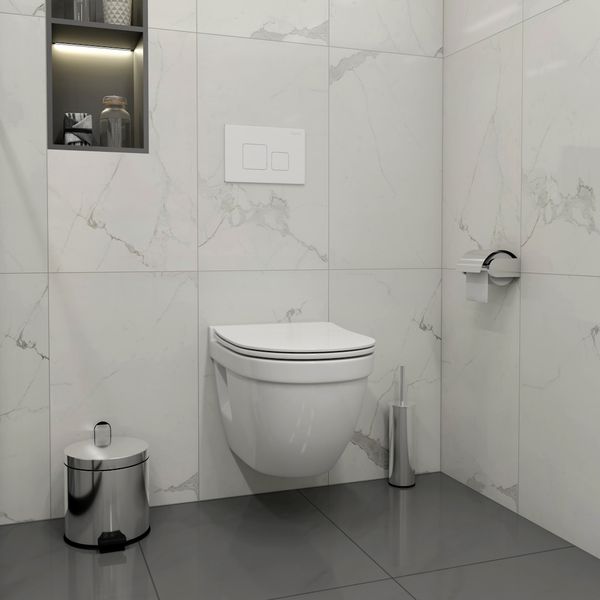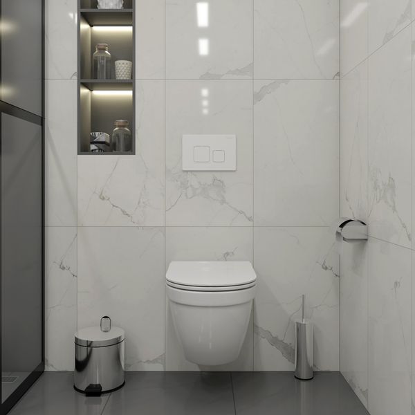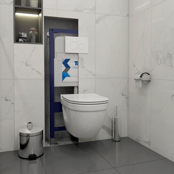 Комплект «Готовое решение» для установки инсталляции с подвесным унитазом включает: -- инсталляция TEYMI AINA 52 T70011 – монтажная рама из стального профиля толщиной 1.5 мм увеличенной ширины 52,5 см с дополнительными вертикальными усиливающими стойками, что позволяет выдерживать нагрузки до 400 кг; -- клавиша смыва TEYMI KATI T70021WM, цвет БЕЛЫЙ МАТОВЫЙ; -- унитаз подвесной TEYMI VITRA PRO T40806; -- быстросъёмное сиденье с микролифтом; -- полный комплект арматуры для монтажа, включающий в себя уплотнительные кольца и манжеты, трубу смыва, фановый отвод с удлинителем, защитный кожух ревизионного окна с крепежной рамкой, закрывающей панелью и крышкой; -- полный комплект крепежа для установки, а именно: крепеж к стене, шпильки для унитаза, крепежная рамка, соединительные шпильки, толкатели; -- инструкция по установке и обслуживанию. Преимущества комплекта «Готовое решение» для установки инсталляции с подвесным унитазом: -- полная (максимальная) комплектация для установки - больше ничего докупать не придётся; -- все составляющие комплекта идеально подходят друг к другу; -- взаимозаменяемость комплектующих; -- рама покрыта суперпрочной порошковой краской с антикоррозионными свойствами; -- высота рамы может регулироваться с ходом до 20 см с помощью ножек, изготовленных из оцинкованной стали; -- сливной бачок скрытого монтажа изготовлен из современных полимерных материалов и является цельнолитым (бесшовным), что позволяет ему работать без протечек в течение всего периода эксплуатации; -- лёгкость обслуживания сливного бачка достигается благодаря удобному ревизионному окну, скрытому за клавишей смыва; -- клавиша смыва имеет две кнопки и работает в режиме ЭКОНОМ / ПОЛНЫЙ (объёмы смыва 3 / 6 литров); -- гарантия на весь комплект составляет 10 лет, а рама прослужит все 50. Комплект «Готовое решение» для установки инсталляции TEYMI AINA 52 с подвесным унитазом TEYMI VITRA PRO T40806 и клавишей TEYMI KATI T70021WM в цвете белый матовый подобран специально для того, чтобы покупателям было проще сориентироваться в огромном выборе товаров для ванной комнаты. Оптимальное сочетание инсталляционной системы, клавиши смыва и подвесного унитаза позволит не задумываясь сделать правильный выбор. Инсталляция для подвесного унитаза от известного финского бренда TEYMI предназначена для оборудования санузлов и выгодно отличается своей надёжностью и простотой установки. Уважаемые покупатели, обращаем ваше внимание на то, что система инсталляции TEYMI AINA 52 может быть также укомплектована другими клавишами смыва или подвесными унитазами от бренда TEYMI (вы легко сможете найти их на этом сайте по указанным артикулам). Предлагаем вам рассмотреть варианты сочетания со следующими клавишами: : HELMI хром T70202CH : HELMI черная T70203BM : HELMI белая T70018WM : LINA хром T70102CH : LINA черная T70103BM : LINA белая T70019WM : AINA хром T70012CH : AINA черная T70013BM : AINA белая T70020WM : KATI хром T70701CH : KATI черная T70702BM : KATI белая T70021WM : ELLIE хром T70022CH : ELLIE черная T70023BM : ELLIE белая T70024WM Также просим обратить взгляд на наши лучшие безободковые подвесные унитазы: : SOLLI T40201 : LINA S T40102 : HELMI S T40302 : HELMI VORTEX T40303 : IVA T40601 : ELLIE T40802 : LINA MEDIA T40105 : LORI T40501 : KATI T40701 : HANNA PRO T40901 : HELMI S BLACK T40302MB : VITRA PRO T40806 : VITRA T40804 : DEMI T40208 : LINA VORTEX T40110 : RITTA T40809 : LINA PRO T40106