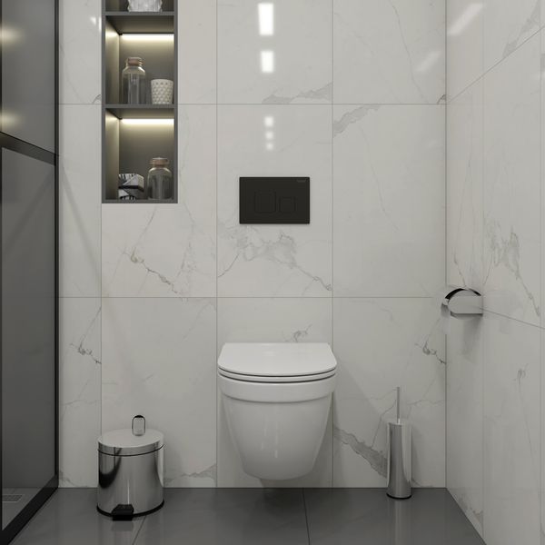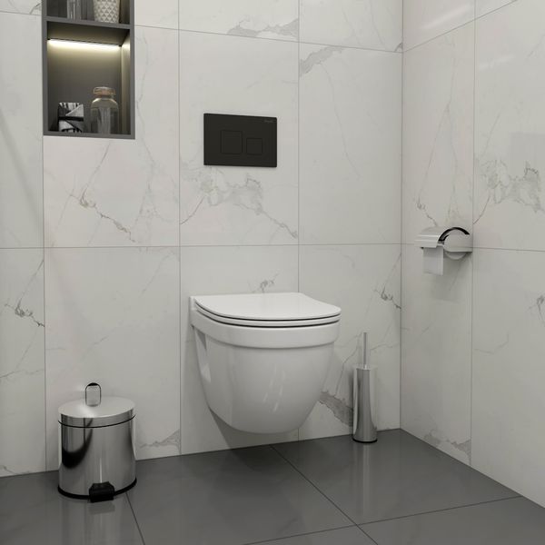 Комплект «Готовое решение» для установки инсталляции с подвесным унитазом включает в себя полный комплект всего необходимого, в том числе: -- инсталляция TEYMI AINA 52 T70011 – мощная монтажная рама из стального профиля толщиной 1.5 мм увеличенной ширины 52,5 см с дополнительными вертикальными усиливающими стойками, что позволяет выдерживать нагрузки до 400 кг; -- цельнолитой бачок скрытого монтажа, обшитый кожухом из пенопласта; -- клавиша смыва TEYMI KATI T70702BM, цвет ЧЕРНЫЙ; -- унитаз подвесной TEYMI VITRA PRO T40806; -- быстросъёмное сиденье из дюропласта с микролифтом; -- полный комплект арматуры для монтажа, включающий в себя уплотнительные кольца и манжеты, трубу смыва, фановый отвод с удлинителем, защитный кожух ревизионного окна с крепежной рамкой, закрывающей панелью и крышкой; -- полный комплект крепежа для установки, а именно: крепеж к стене, шпильки для унитаза, крепежная рамка, соединительные шпильки, толкатели; -- инструкция по установке и обслуживанию продукции на русском языке. Преимущества комплекта «Готовое решение» для установки инсталляции с подвесным унитазом: -- полная (максимальная) комплектация для установки - больше ничего докупать не придётся; -- все составляющие комплекта тщательно подобраны и идеально подходят друг к другу; -- известный финский бренд TEYMI, получивший признание покупателей на российском рынке; -- взаимозаменяемость – всегда можно заменить на другой унитаз или клавишу смыва; -- рама инсталляции покрыта суперпрочной порошковой краской с антикоррозионными свойствами; -- высота монтажной рамы может регулироваться с ходом до 20 см с помощью ножек, изготовленных из оцинкованной стали; -- сливной бачок скрытого монтажа изготовлен из современных полимерных материалов и является цельнолитым (бесшовным), что позволяет ему работать без протечек в течение всего периода эксплуатации; -- специальный кожух из пенопласта защищает сливной бачок от возникновения конденсата и создаёт дополнительную шумоизоляцию; -- лёгкость обслуживания сливного бачка достигается благодаря удобному ревизионному окну, скрытому за клавишей смыва; -- клавиша смыва имеет две кнопки и работает в режиме ЭКОНОМ / ПОЛНЫЙ (объёмы смыва 3 литра / 6 литров); -- гарантия на весь комплект составляет 10 лет, а рама прослужит все 50; -- наши специалисты всегда рады оказать вам консультационную помощь. Комплект «Готовое решение» для установки инсталляции TEYMI AINA 52 с подвесным унитазом TEYMI VITRA PRO T40806 и клавишей TEYMI KATI T70702BM в цвете черный подобран специально для того, чтобы покупателям было проще сориентироваться в огромном выборе товаров для ванной комнаты. Оптимальное сочетание инсталляционной системы, клавиши смыва и подвесного унитаза позволит не задумываясь сделать правильный выбор. Инсталляция для подвесного унитаза от известного финского бренда TEYMI предназначена для оборудования санузлов и выгодно отличается своей надёжностью и простотой установки. В комплект инсталляционной системы TEYMI AINA 52 входит цельнолитой смывной бачок белого цвета с ревизионным отверстием для удобного доступа к обслуживанию; кожух из пенопласта для защиты от конденсата и дополнительной шумоизоляции; стальная монтажная рама повышенной ширины и дополнительным усилением, окрашенная стойкой антикоррозионной порошковой краской синего вета; регулируемые по высоте ножки из оцинкованной ста
