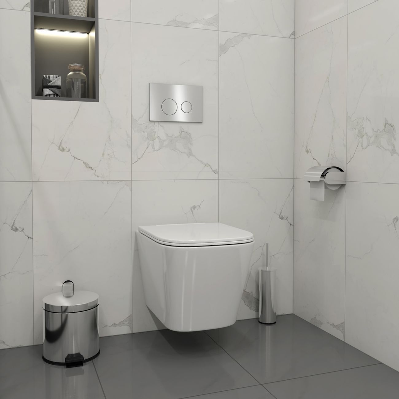 Комплект «Готовое решение» для установки инсталляции с подвесным унитазом: -- инсталляция TEYMI AINA 50 T70033 – монтажная рама из цельного стального профиля прямоугольного сечения, позволяющая выдерживать нагрузки до 400 кг. Габаритная ширина рамы 525 мм; -- клавиша смыва TEYMI LINA T70104, корпус нержавеющая сталь, цвет НЕРЖАВЕЮЩАЯ СТАЛЬ МАТОВЫЙ; -- унитаз подвесной TEYMI HELMI S T40302; -- быстросъёмное сиденье с микролифтом; -- полный комплект арматуры для монтажа, включающий в себя уплотнительные кольца и манжеты, трубу смыва, фановый отвод с удлинителем, защитный кожух ревизионного окна с крепежной рамкой, закрывающей панелью и крышкой; -- полный комплект крепежа для установки, а именно: крепеж к стене, шпильки для унитаза, крепежная рамка, соединительные шпильки, толкатели; -- инструкция по установке и обслуживанию. Преимущества комплекта: -- полная (максимальная) комплектация для установки - больше ничего докупать не придётся; -- все составляющие комплекта идеально подходят друг к другу; -- рама покрыта суперпрочной порошковой краской синего цвета с антикоррозионными свойствами; -- высота монтажной рамы может регулироваться с ходом до 20 см с помощью ножек из оцинкованной стали; -- универсальный монтаж – межосевое расстояние под шпильки для подвесного унитаза 180 и 230 мм – подходит ко всем подвесным унитазам; -- сливной бачок скрытого монтажа, изготовленный из полиэтилена низкого давления, рассчитан на 200 тысяч циклов смыва, а цельнолитая бесшовная конструкция позволит работать без протечек в течение всего периода эксплуатации; -- 2-режимный слив 3 / 6 л с возможностью регулировки; -- лёгкость обслуживания бачка благодаря ревизионному окну, скрытому за клавишей смыва; -- гарантия 10 лет на весь комплект и 50 лет на стальную раму. Размер инсталляции с бачком: высота 1055 мм Х ширина 525 мм Х глубина 96 мм. Уважаемые покупатели, обращаем ваше внимание на то, что система инсталляции TEYMI AINA 50 может быть также укомплектована другими клавишами смыва или подвесными унитазами от бренда TEYMI (вы можете найти их на этом сайте по указанным артикулам). Предлагаем вам рассмотреть варианты сочетания со следующими клавишами: : HELMI хром T70202CH : HELMI черная T70203BM : HELMI белая T70018WM : HELMI нержавеющая сталь T70204 : HELMI черный матовый T70205 : HELMI белый глянцевый T70206 : LINA хром T70102CH : LINA черная T70103BM : LINA белая T70019WM : LINA нержавеющая сталь T70104 : LINA черный матовый T70105 : LINA белый матовый T70106 : AINA хром T70012CH : AINA черная T70013BM : AINA белая T70020WM : AINA нержавеющая сталь T70014 : KATI хром T70701CH : KATI черная T70702BM : KATI белая T70021WM : ELLIE хром T70022CH : ELLIE черная T70023BM : ELLIE белая T70024WM Также просим обратить взгляд на наши лучшие безободковые подвесные унитазы: : SOLLI T40201 : LINA S T40102 : HELMI S T40302 : HELMI VORTEX T40303 : IVA T40601 : ELLIE T40802 : LINA MEDIA T40105 : KATI T40701 : HANNA PRO T40901 : HELMI S BLACK T40302MB : VITRA PRO T40806 : VITRA T40804 : DEMI T40208 : LINA VORTEX T40110 : RITTA T40809 : LINA PRO T40106 : LINA S BLACK T40111