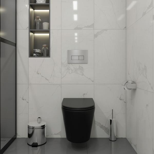 Комплект «Готовое решение» для установки инсталляции с подвесным унитазом: -- инсталляция TEYMI AINA 50 T70033 – монтажная рама из цельного стального профиля прямоугольного сечения, позволяющая выдерживать нагрузки до 400 кг. Габаритная ширина рамы 525 мм; -- клавиша смыва TEYMI HELMI T70204, корпус нержавеюшая сталь, цвет НЕРЖАВЕЮЩАЯ СТАЛЬ МАТОВЫЙ; -- унитаз подвесной TEYMI Solli T40201MB черный; -- быстросъёмное сиденье с микролифтом; -- полный комплект арматуры для монтажа, включающий в себя уплотнительные кольца и манжеты, трубу смыва, фановый отвод с удлинителем, защитный кожух ревизионного окна с крепежной рамкой, закрывающей панелью и крышкой; -- полный комплект крепежа для установки, а именно: крепеж к стене, шпильки для унитаза, крепежная рамка, соединительные шпильки, толкатели; -- инструкция по установке и обслуживанию. Преимущества комплекта: -- полная (максимальная) комплектация для установки - больше ничего докупать не придётся; -- все составляющие комплекта идеально подходят друг к другу; -- рама покрыта суперпрочной порошковой краской синего цвета с антикоррозионными свойствами; -- высота монтажной рамы может регулироваться с ходом до 20 см с помощью ножек из оцинкованной стали; -- универсальный монтаж – межосевое расстояние под шпильки для подвесного унитаза 180 и 230 мм – подходит ко всем подвесным унитазам; -- сливной бачок скрытого монтажа, изготовленный из полиэтилена низкого давления, рассчитан на 200 тысяч циклов смыва, а цельнолитая бесшовная конструкция позволит работать без протечек в течение всего периода эксплуатации; -- 2-режимный слив 3 / 6 л с возможностью регулировки; -- лёгкость обслуживания бачка благодаря ревизионному окну, скрытому за клавишей смыва; -- гарантия 10 лет на весь комплект и 50 лет на стальную раму. Размер инсталляции с бачком: высота 1055 мм Х ширина 525 мм Х глубина 96 мм. Уважаемые покупатели, обращаем ваше внимание на то, что система инсталляции TEYMI AINA 50 может быть также укомплектована другими клавишами смыва или подвесными унитазами от бренда TEYMI (вы можете найти их на этом сайте по указанным артикулам). Предлагаем вам рассмотреть варианты сочетания со следующими клавишами: : HELMI хром T70202CH : HELMI черная T70203BM : HELMI белая T70018WM : HELMI нержавеющая сталь T70204 : HELMI черный матовый T70205 : HELMI белый глянцевый T70206 : LINA хром T70102CH : LINA черная T70103BM : LINA белая T70019WM : LINA нержавеющая сталь T70104 : LINA черный матовый T70105 : LINA белый матовый T70106 : AINA хром T70012CH : AINA черная T70013BM : AINA белая T70020WM : AINA нержавеющая сталь T70014 : KATI хром T70701CH : KATI черная T70702BM : KATI белая T70021WM : ELLIE хром T70022CH : ELLIE черная T70023BM : ELLIE белая T70024WM Также просим обратить взгляд на наши лучшие безободковые подвесные унитазы: : SOLLI T40201 : LINA S T40102 : HELMI S T40302 : HELMI VORTEX T40303 : IVA T40601 : ELLIE T40802 : LINA MEDIA T40105 : KATI T40701 : HANNA PRO T40901 : HELMI S BLACK T40302MB : VITRA PRO T40806 : VITRA T40804 : DEMI T40208 : LINA VORTEX T40110 : RITTA T40809 : LINA PRO T40106 : LINA S BLACK T40111