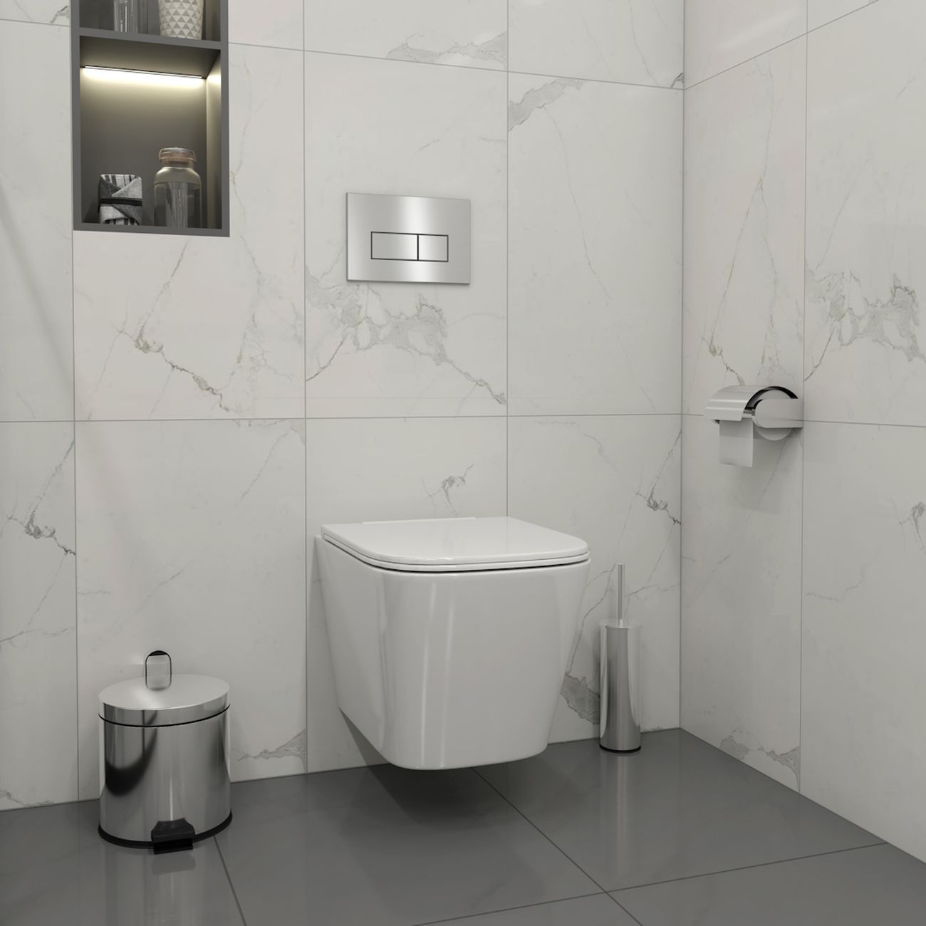 Комплект «Готовое решение» для установки инсталляции с подвесным унитазом: -- инсталляция TEYMI AINA 50 T70033 – монтажная рама из цельного стального профиля прямоугольного сечения, позволяющая выдерживать нагрузки до 400 кг. Габаритная ширина рамы 525 мм; -- клавиша смыва TEYMI HELMI T70204, корпус нержавеюшая сталь, цвет НЕРЖАВЕЮЩАЯ СТАЛЬ МАТОВЫЙ; -- унитаз подвесной TEYMI HELMI S T40302; -- быстросъёмное сиденье с микролифтом; -- полный комплект арматуры для монтажа, включающий в себя уплотнительные кольца и манжеты, трубу смыва, фановый отвод с удлинителем, защитный кожух ревизионного окна с крепежной рамкой, закрывающей панелью и крышкой; -- полный комплект крепежа для установки, а именно: крепеж к стене, шпильки для унитаза, крепежная рамка, соединительные шпильки, толкатели; -- инструкция по установке и обслуживанию. Преимущества комплекта: -- полная (максимальная) комплектация для установки - больше ничего докупать не придётся; -- все составляющие комплекта идеально подходят друг к другу; -- рама покрыта суперпрочной порошковой краской синего цвета с антикоррозионными свойствами; -- высота монтажной рамы может регулироваться с ходом до 20 см с помощью ножек из оцинкованной стали; -- универсальный монтаж – межосевое расстояние под шпильки для подвесного унитаза 180 и 230 мм – подходит ко всем подвесным унитазам; -- сливной бачок скрытого монтажа, изготовленный из полиэтилена низкого давления, рассчитан на 200 тысяч циклов смыва, а цельнолитая бесшовная конструкция позволит работать без протечек в течение всего периода эксплуатации; -- 2-режимный слив 3 / 6 л с возможностью регулировки; -- лёгкость обслуживания бачка благодаря ревизионному окну, скрытому за клавишей смыва; -- гарантия 10 лет на весь комплект и 50 лет на стальную раму. Размер инсталляции с бачком: высота 1055 мм Х ширина 525 мм Х глубина 96 мм. Уважаемые покупатели, обращаем ваше внимание на то, что система инсталляции TEYMI AINA 50 может быть также укомплектована другими клавишами смыва или подвесными унитазами от бренда TEYMI (вы можете найти их на этом сайте по указанным артикулам). Предлагаем вам рассмотреть варианты сочетания со следующими клавишами: : HELMI хром T70202CH : HELMI черная T70203BM : HELMI белая T70018WM : HELMI нержавеющая сталь T70204 : HELMI черный матовый T70205 : HELMI белый глянцевый T70206 : LINA хром T70102CH : LINA черная T70103BM : LINA белая T70019WM : LINA нержавеющая сталь T70104 : LINA черный матовый T70105 : LINA белый матовый T70106 : AINA хром T70012CH : AINA черная T70013BM : AINA белая T70020WM : AINA нержавеющая сталь T70014 : KATI хром T70701CH : KATI черная T70702BM : KATI белая T70021WM : ELLIE хром T70022CH : ELLIE черная T70023BM : ELLIE белая T70024WM Также просим обратить взгляд на наши лучшие безободковые подвесные унитазы: : SOLLI T40201 : LINA S T40102 : HELMI S T40302 : HELMI VORTEX T40303 : IVA T40601 : ELLIE T40802 : LINA MEDIA T40105 : KATI T40701 : HANNA PRO T40901 : HELMI S BLACK T40302MB : VITRA PRO T40806 : VITRA T40804 : DEMI T40208 : LINA VORTEX T40110 : RITTA T40809 : LINA PRO T40106 : LINA S BLACK T40111