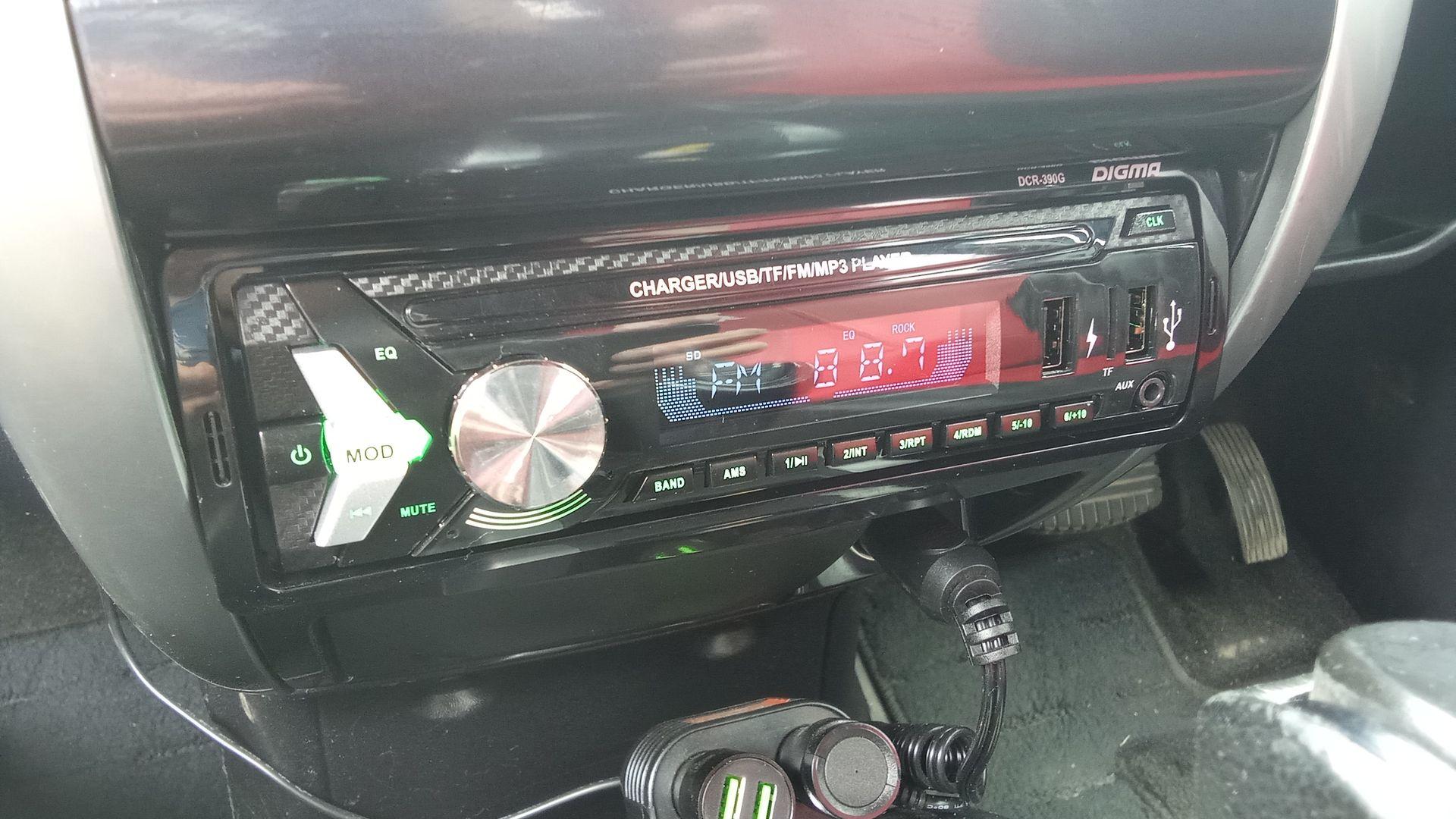Работает (что само по себе уже хорошо), стандартный 1din размер, есть рамка, закрывающая щель между корпусом магнитолы и посадочным местом (правда она несъемная). Удобное управление, после сенсора просто каеф, кнопки на ощупь определяются на отлично. Вполне приличный внешний вид, думал будет хуже. Экран кстати больше, чем на магазинных фото, видимо новая ревизия. Отличная подсветка, не навязчивая и в тоже время все видно. Два USB и слот для карты памяти.
