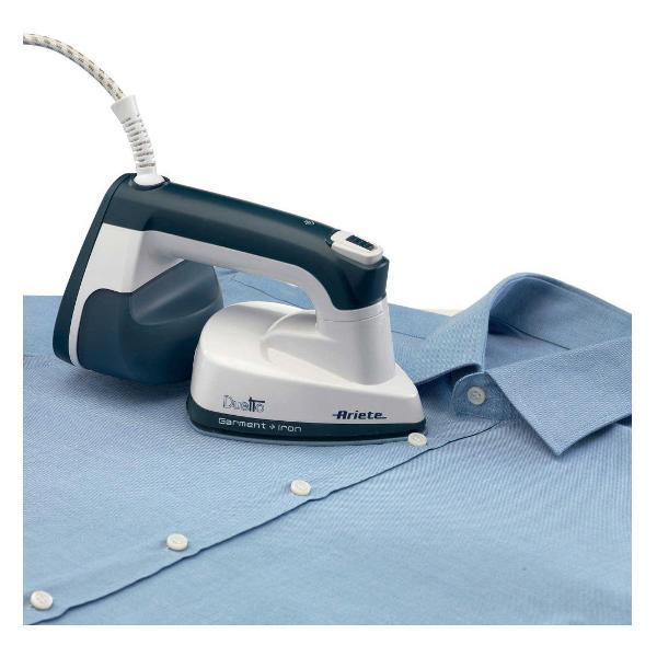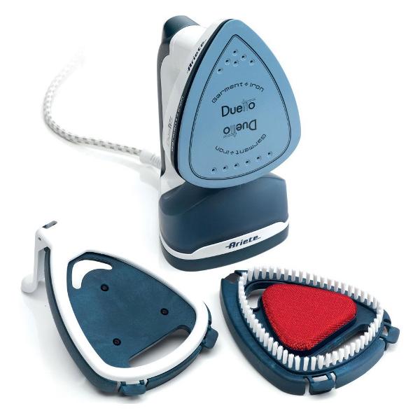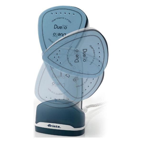 Отпариватель Ariete Duetto Garment — ручное устройство, снабженное поворачивающейся на 180° рабочей головкой, что позволяет использовать его в качестве классического утюга. Корпус модели выполнен из пластика, рабочая подошва — керамическая.