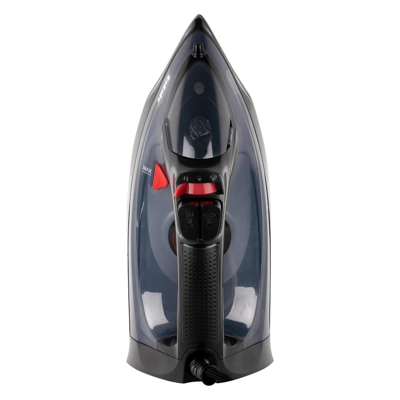 Пар подается под давление 1 Бар интенсивностью до 100 г/мин. Модель снабжена функцией вертикального отпаривания. Прибор работает от электросети напряжением 220-240 В, подключается с помощью кабеля длиной 1,6 м. Шаровое крепление предотвращает спутывание. Потребляемая мощность составляет 2200 Вт. На корпусе присутствуют индикация включения, готовности работы. Время нагрева до рабочего состояния занимает около 1 минуты. Размеры утюга — 28,2х11,7х13,5 см, вес — 0,82 кг.