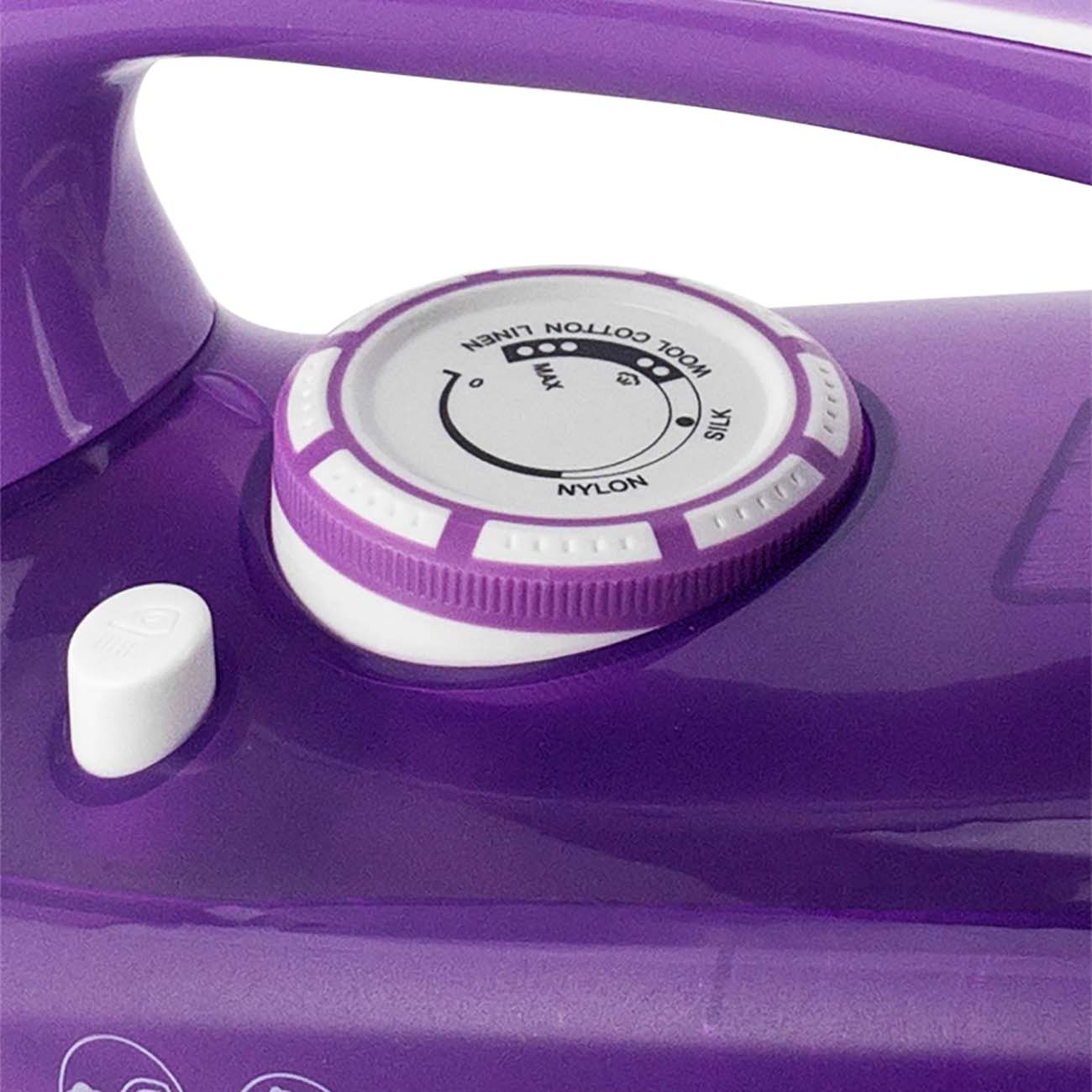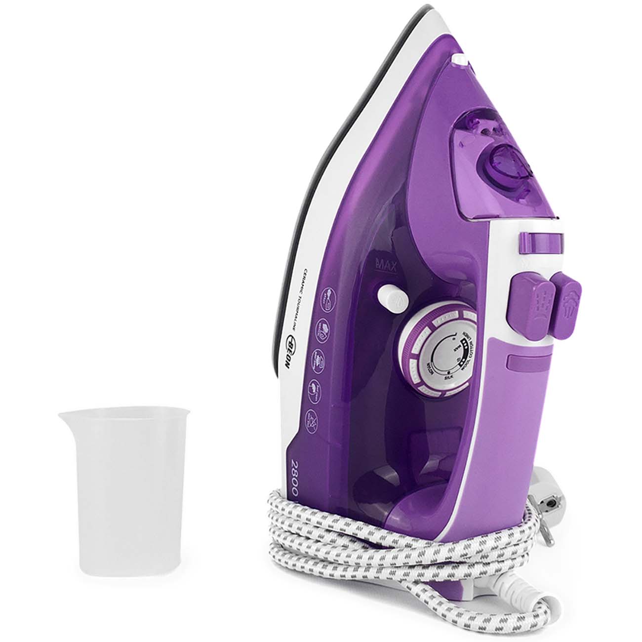 Утюг Beon BN-8705 сиреневого цвета с тремя режимами оснащен распылителем воды и системой регулируемой подачи пара. Устройство самостоятельно очищается от накипи. Максимальная интенсивность подачи пара — 40 г/мин. Присутствует функция вертикального отпаривания и антикапельная система, предотвращающая появление мокрых пятен на вещах. Вес изделия — 1,2 кг. Шнур вращается на 360° в месте крепления. Индикация показывает уровень воды и готовность прибора к работе. Способ управления — механический. Длина шнура составляет 1,8 м. Ручка с прорезиненной поверхностью не скользит в ладони.