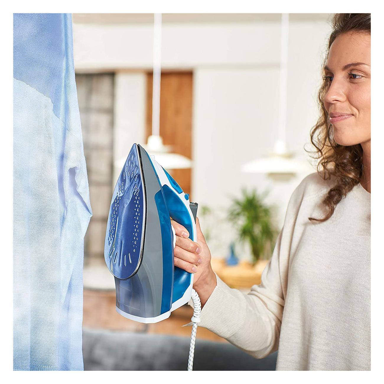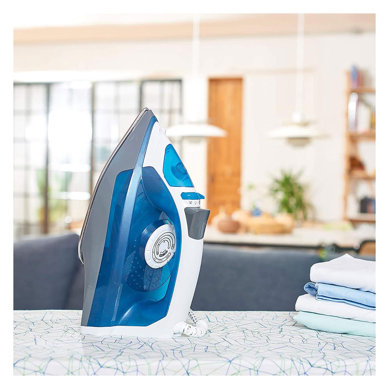 Утюг B&D BXIR2200E голубого цвета с бело-серыми элементами обладает мощностью 2200 Вт. Корпус модели выполнен из пластика, подошва изготовлена из нержавеющей стали. Встроен парогенератор с силой парового удара 120 г. Интенсивность подачи пара — 30 г/мин. Доступна функция вертикального отпаривания. Резервуар вмещает до 280 мл воды, возможен дозалив во время работы.