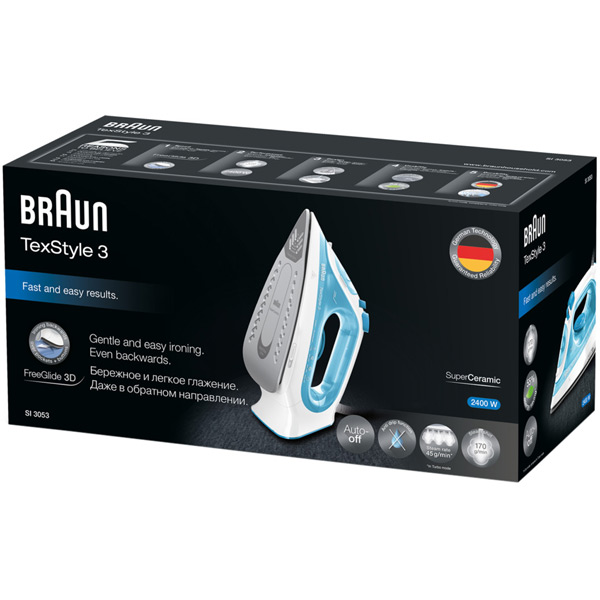 Вы можете купить Утюг Braun 12730011-SI3053BL в магазинах М.Видео по доступной цене. Утюг Braun 12730011-SI3053BL: подробное описание, фото и отзывы реальных покупателей, характеристики, возможность скачать инструкции и подобрать аксессуары.