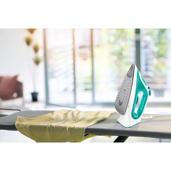 Подошва утюга выполнена из керамики с применением технологии Superceramic 3d Freeglide. Это обеспечивает легкое скольжение по ткани. Также прибор оснащен функцией самоочистки, которая позволяет убирать накипь и другие отложения с внутренних элементов и паровых отверстий. Противокапельная система предотвращает образование пятен на одежде от пролитой воды.