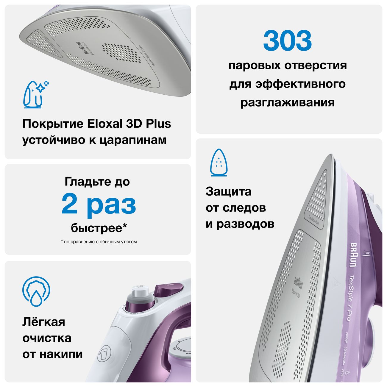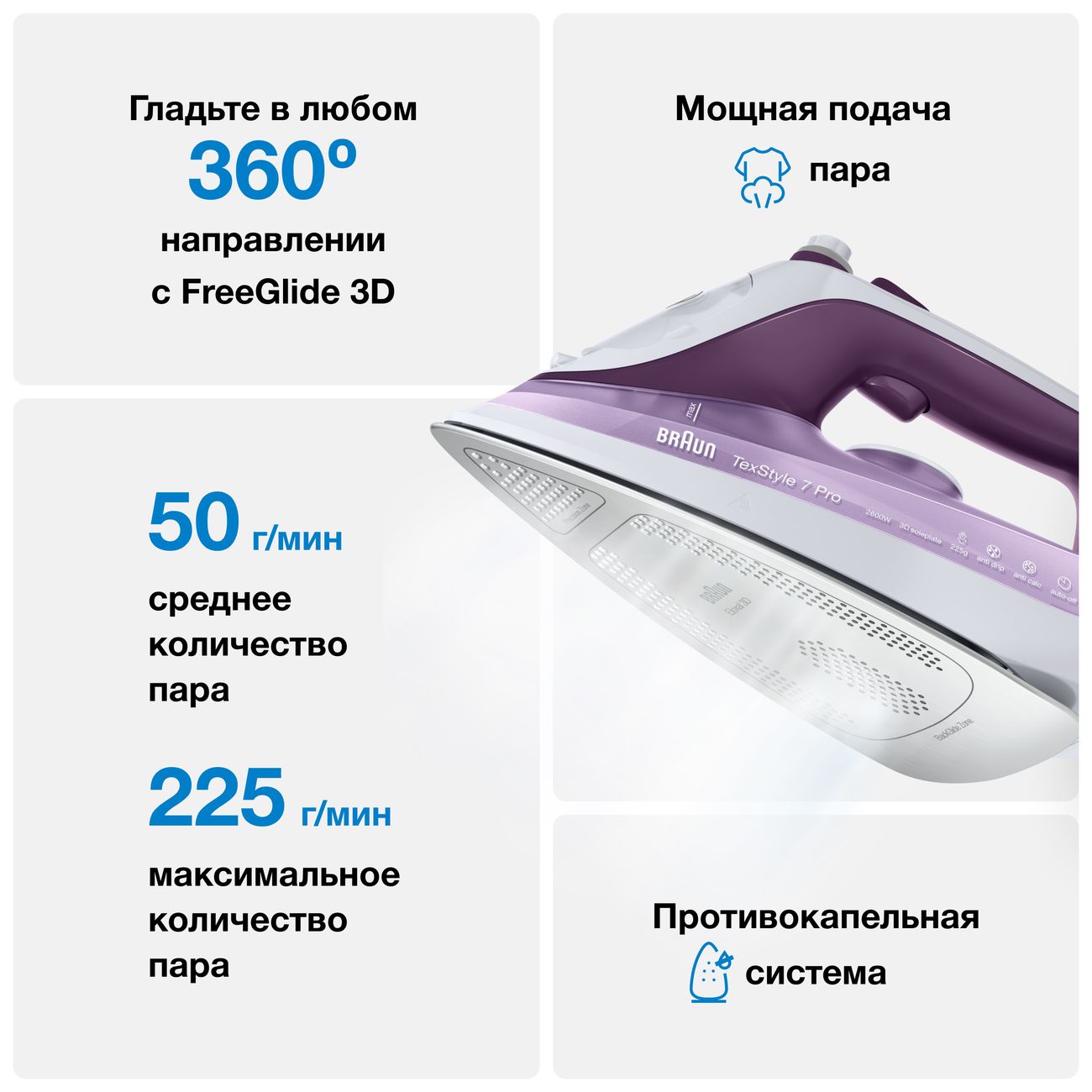 Пользовалась прошлым брауном примерно 8 лет. Тщательно следила. Утюг до сих пор работает. Отдала сыну на съёмную квартиру, поэтому нужен был новый. Глажу много. Шторы, портьеры, блузы и сорочки. Для меня главными критериями были вертикальное отпаривание и мощность пара. Подруга всё советовала взять филипс, но я решила не изменять своему мнению о немцах и решительно шла за брауном.