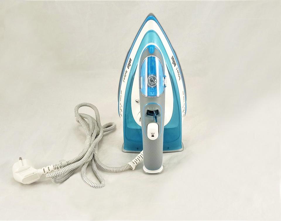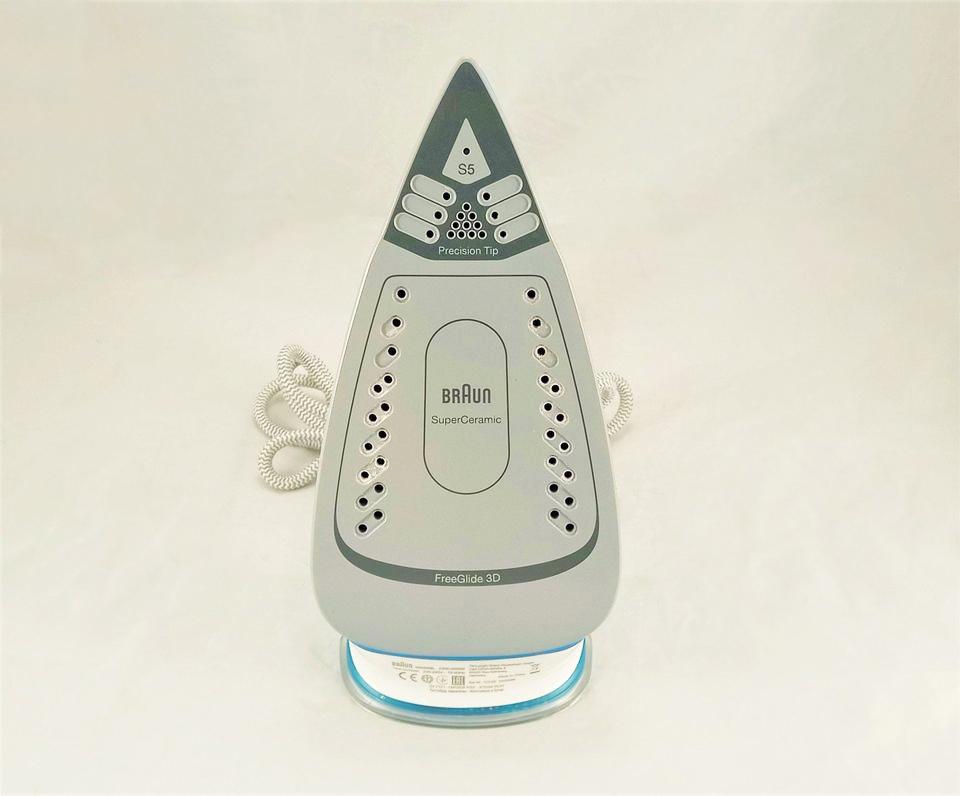 «Конкурс отзывов DeLonghi» Замечательный утюг Утюг Braun SI5006BL купили на замену старому, который стал сморкаться и оставлять после себя желтые лужи. Перед покупкой я определилась, что мне важнее базовый функционал и демократичная цена, нежели крутая подошва и неоправданно высокая стоимость. А теперь горячие подробности. Внешне утюг красивый, гладить ведь тоже хочется с удовольствием. Удобная вилка с ушком, чтобы легче было вынимать из розетки. Шнур полосатый, серо-белый, и на нем не будут заметны следы эксплуатации, как если бы он был просто белым. Он имеет шарнирное крепление, это дает свободу движений и предохраняет от заломов. Длина шнура составляет 2 метра, потребность в удлинителе отпадает. Эта модель утюга заинтересовала меня необычной формой ручки. Она имеет открытый вид, я считаю, что это очень удобно. Несмотря на эту особенность основание у утюга устойчивое, он не раскачивается, и без посторонней помощи врятли упадет. Нагревается он очень быстро, буквально за одну минуту, а остывает медленно, это следует учесть, если есть дети или животные. Температура регулируется классическим колесиком с точками. Отдельно скажу про подошву: носик острый, он его везде засунет, будьте уверены. Отверстий для пара много, в том числе и на носике. Отличительной особенностью утюга является система, предотвращающая кальцинирования. Вес оптимальный, всего 1,2 кг, для хрупкой Золушки в самый раз. Скользит отлично, проплывая волны ткани, за собой оставляет чистую гладь. Технология FreeGlide 3D позволяет утюгу скользить через любые препятствия в виде пуговиц и клепок, причём как в прямом, так и в обратном направлении, точь в точь как сноуборд.