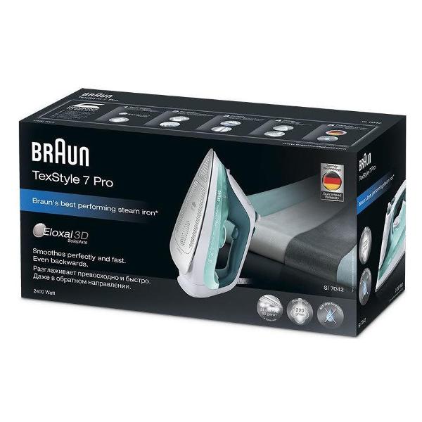 Утюг Braun SI 7042 GR TexStyle 7 оснащен многоуровневой системой увлажнения с тремя активными паровыми зонами. Эта модель используется для традиционной глажки, горизонтального и вертикального отпаривания. В режиме «Турбо» сила парового удара достигает 220 г/минуту (в обычном — 50 г/минуту). В приборе реализованы функции самоочистки и автоматического отключения после 8 минут бездействия.