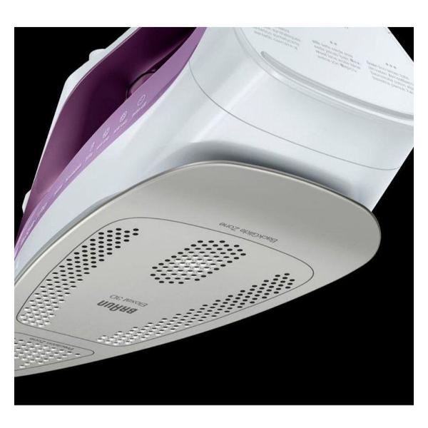 Возможен долив жидкости в процессе отглаживания вещей. Предельное давление составляет 5 бар. Максимальная потребляемая мощность — 2600 Вт. Интенсивность подачи пара — до 50 г/мин. Корпус изготовлен из пластика, подошва — из 3D Eloxal, в основе которого — высококачественный алюминий. Вес — 2,5 кг.
